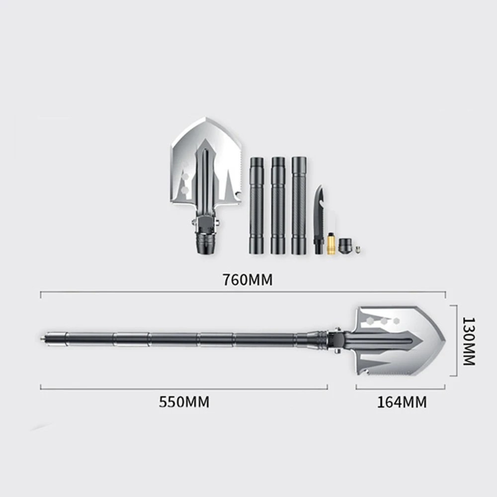 Название: портативная мультифункциональная Складная лопаткаОбщая длина: 76 смЛопата: 13*16 смМатериал шовца: марганцевая стальМатериал ручки: алюминиевый сплавМатериал тактического ножа: нержавеющая сталь 440