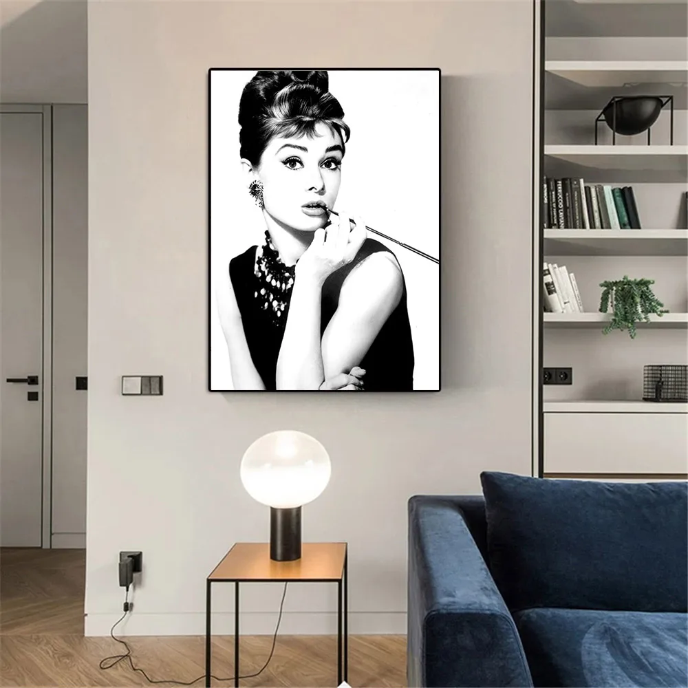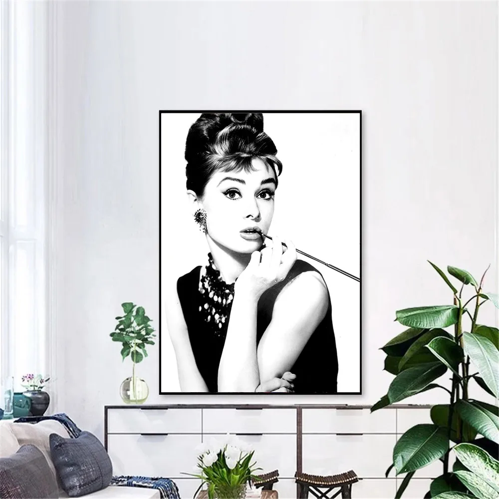 Черно-белый модный женский настенный плакат, Женский фильм, звезда, холст, живопись, современный принт, настенные картины, гостиная, домашний декор