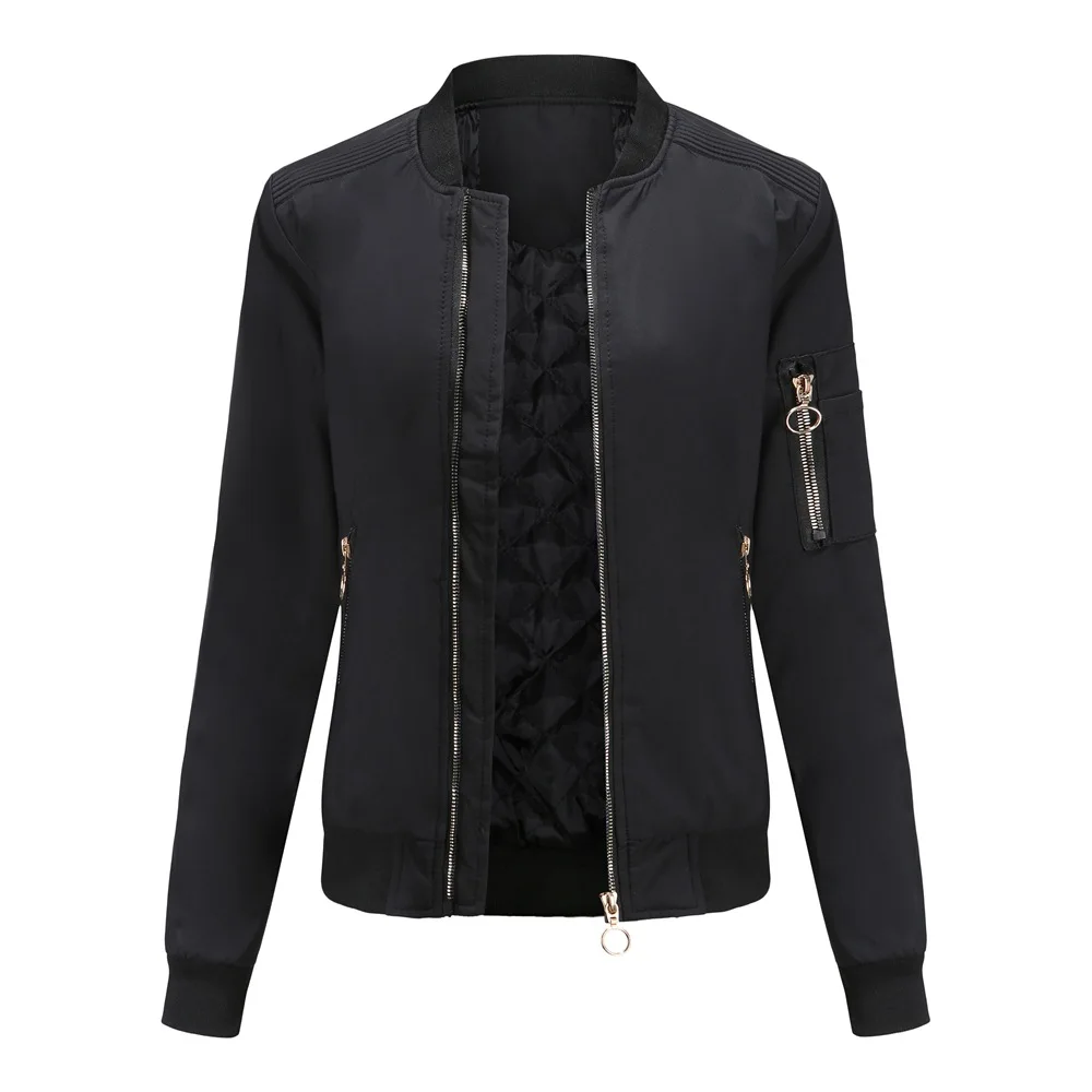 Куртка женская, на молнии, с Бейсбольным воротником, на весну и осень