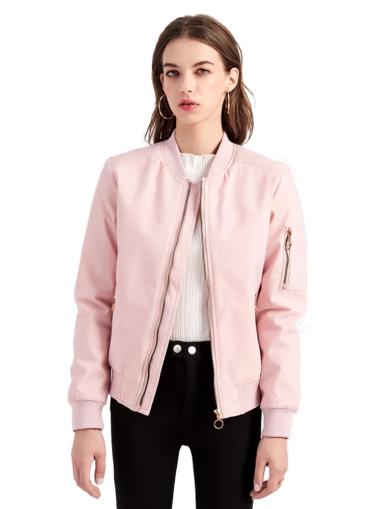Куртка-бомбер Женская Весенняя, розовая, теплая, с длинным рукавом,...