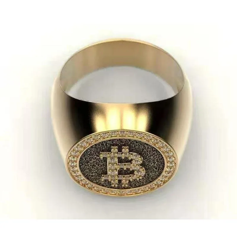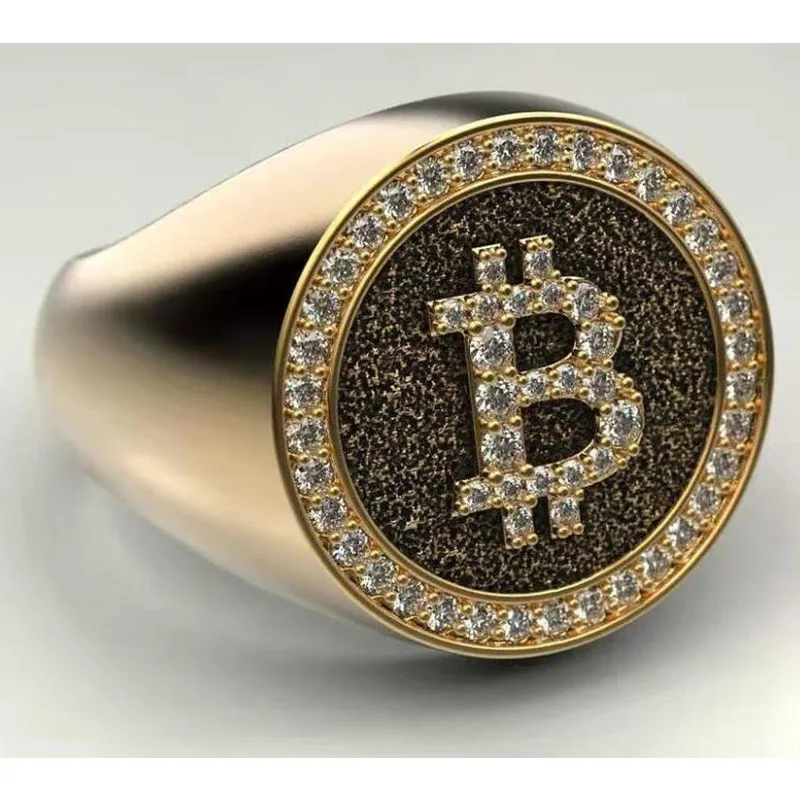 кольца 2021 тренд прикольные штучки Роскошное модное мужское кольцо с биткоином, обручальное кольцо, модные аксессуары, кольцо для пары, Подарок на годовщину