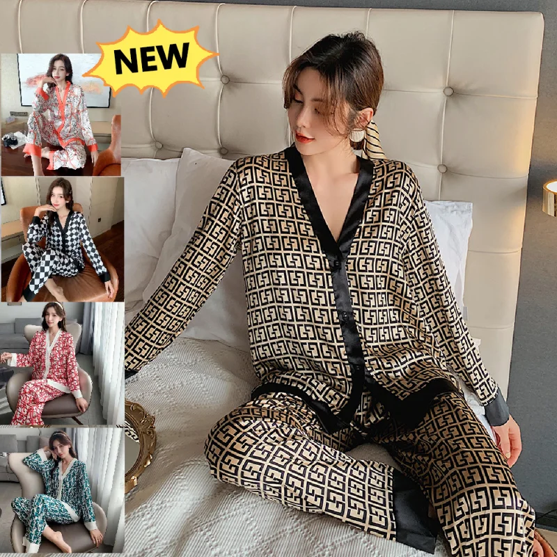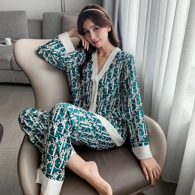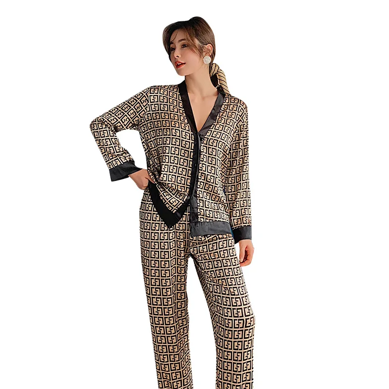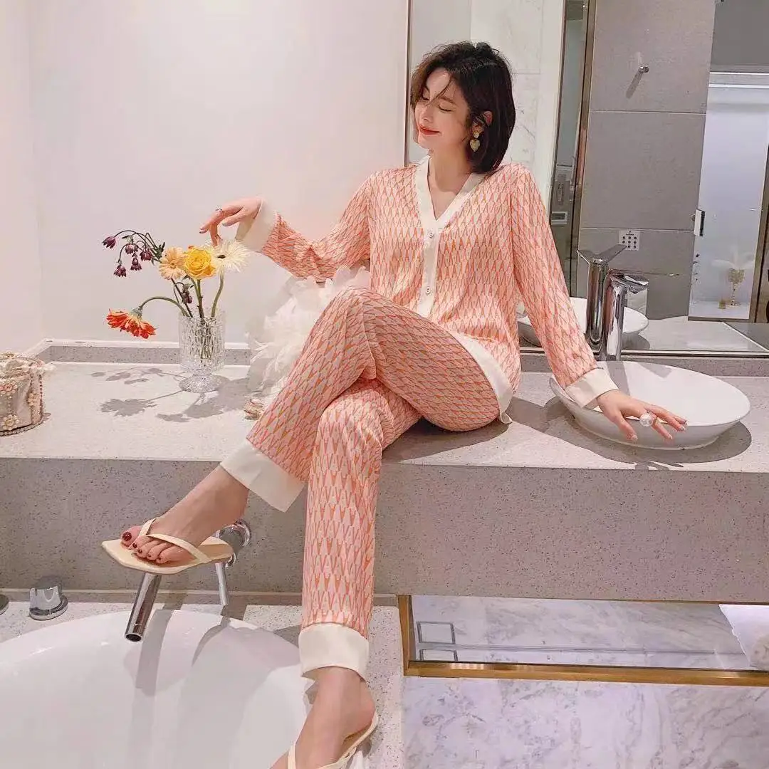 Весна 2021, Женская атласная пижама из двух предметов, комплект одежды для сна, топ с V-образным вырезом и брюки, Женская домашняя одежда, пикантная Пижама для отдыха