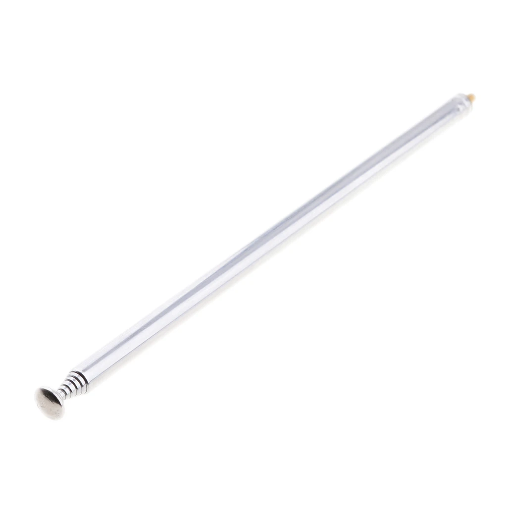 7-секционная телескопическая антенна.В основном используется для телевидения, радио, электрических игрушек, пультов дистанционного управления, ламп и фонарей, VCD и другой специальной конфигурации антенна связи, железных и инструментов, антенн и других электронных изделий.Отличная замена поврежденной телевизионной антенне или FM-радиоантенне!Полная длина усадки: 173 ммУвеличьте полную длину: 973 мм (всего семь секций)