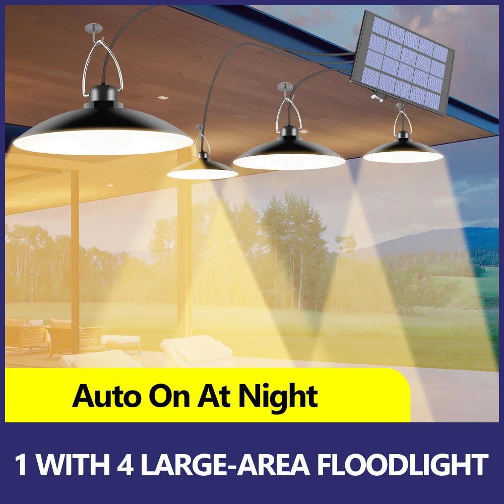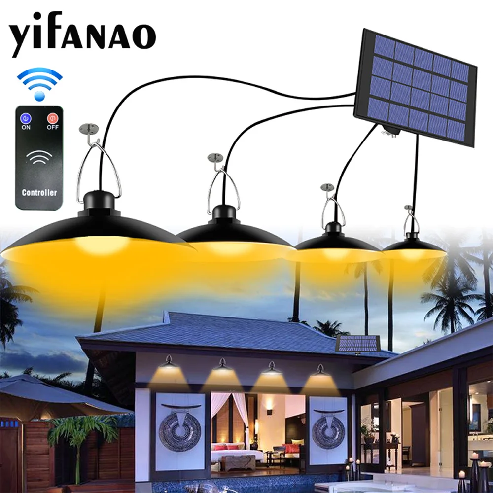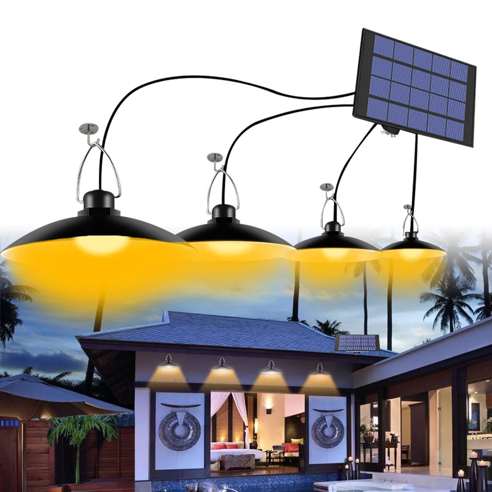 Подвесные светильники на солнечной батарее, 4 головки, 80 светодиодов, удаленный теплый белый свет, водонепроницаемая Чувствительная лампа для сада, двора, патио, балкона, дома, ландшафта