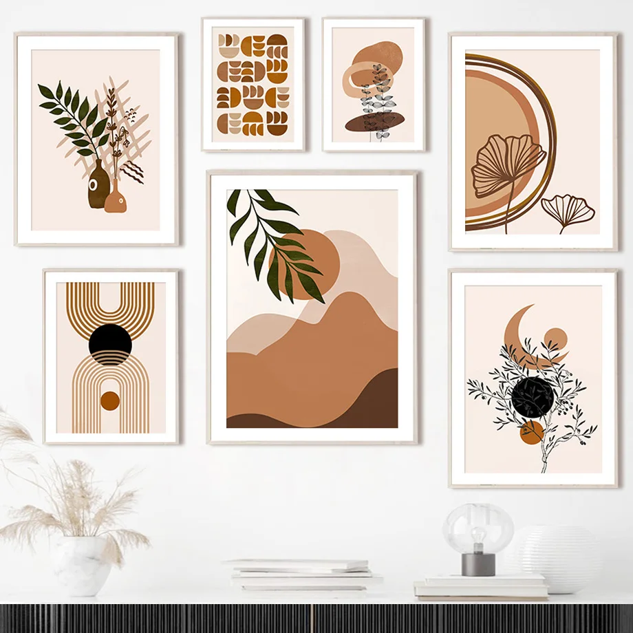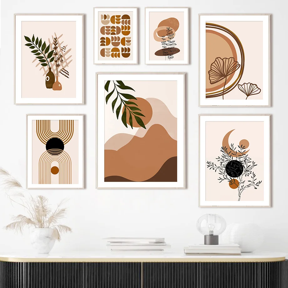 Горное солнце, луна, лист, растения, абстрактное геометрическое искусство, холст, живопись, скандинавские плакаты и принты, настенные картины для декора гостинойМатериал: экологически чистый хлопокХарактеристика: солнцезащитный, водонепроницаемый, никогда не выцветает