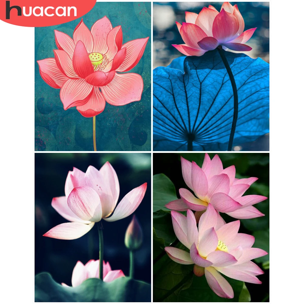 HUACAN краска по номеру Лотос наборы ручная краска ed Сделай Сам картина по номеру цветок украшение для дома рисование на холсте подарок