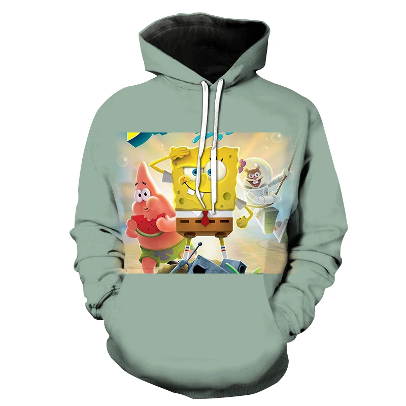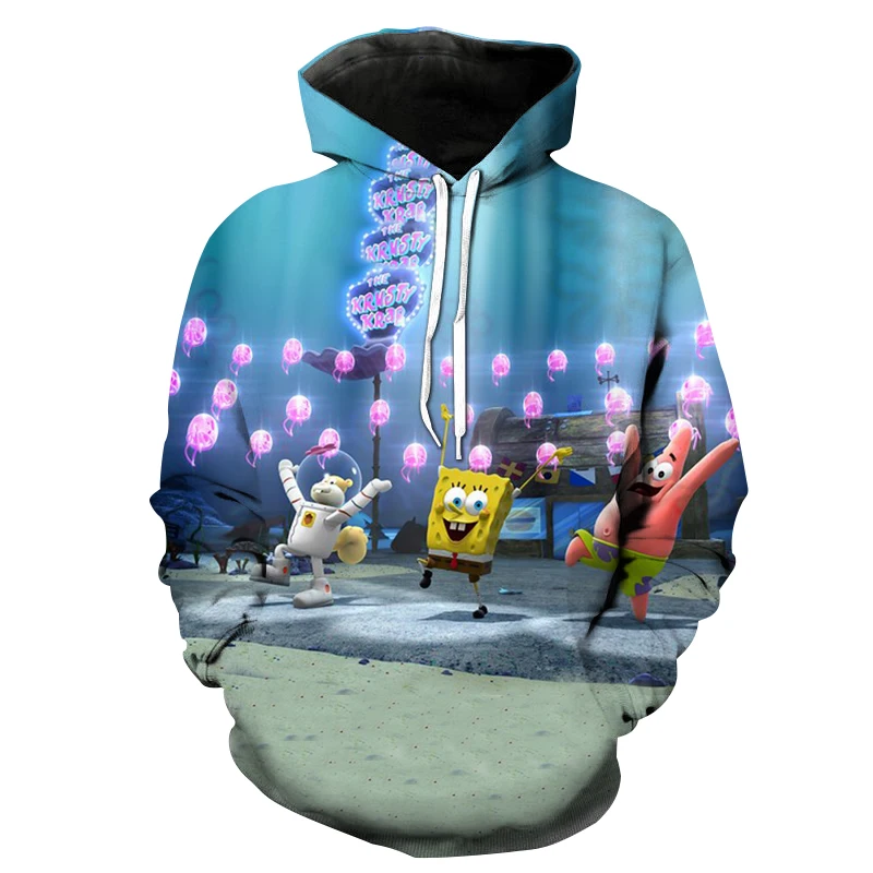 Толстовка с капюшоном для мальчиков, смешная кофта с 3D принтом семьи губки, пуловер с аниме-рисунком, унисекс, пальто с капюшоном для пар, желтого цвета