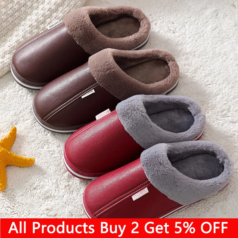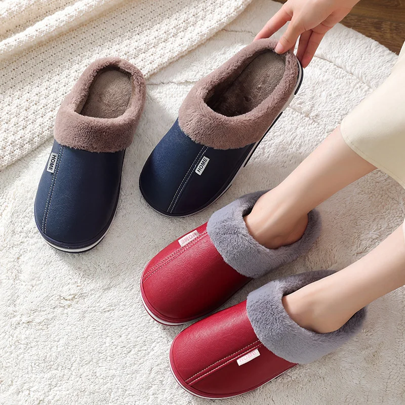 Зимние теплые меховые тапочки для пар, Нескользящие шлепанцы на платформе, мягкие плюшевые сланцы, домашняя обувь с закрытым носком, женские хлопковые тапочки