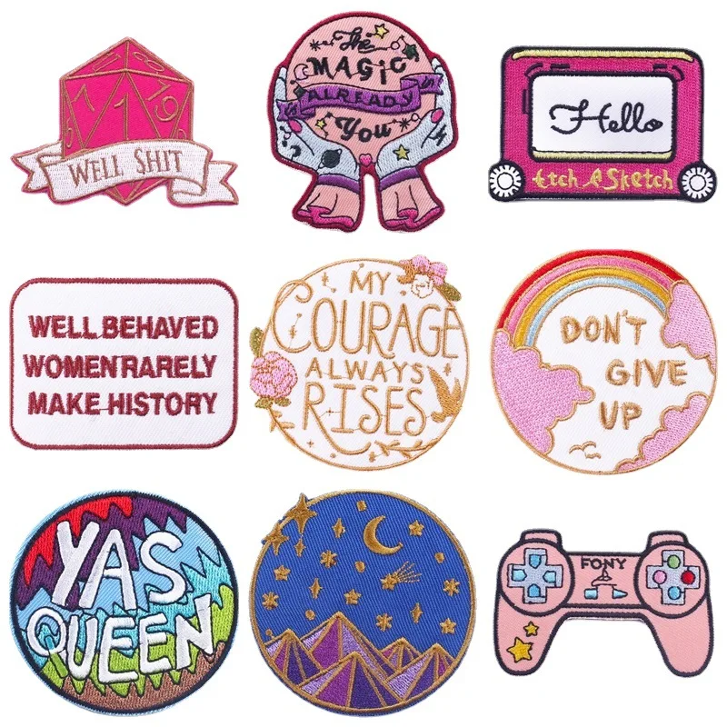 Нашивки с надписью Queen, одежда для девочек, товары для шитья своими руками, железные вышивки, значки со смехом, мультяшная Волшебная нашивка с шариком, Логотип Сумки геймпада