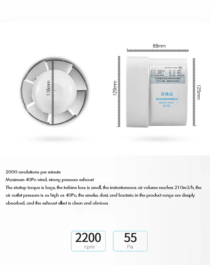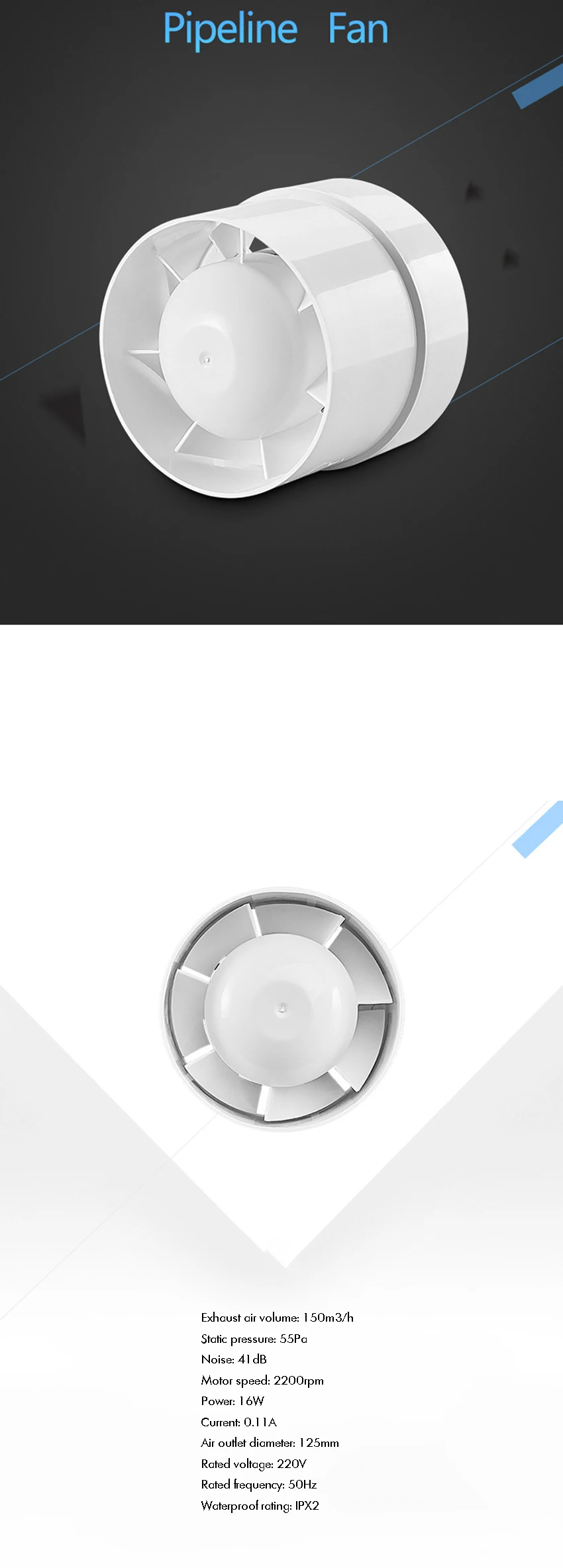 5-дюймовый бустер-вентилятор, объем выхлопного воздуха 150 м 3ч, тихий встроенный воздуховод, вентилятор для вентиляции системы кондиционирования воздуха, низкий уровень шума для ванной и кухни