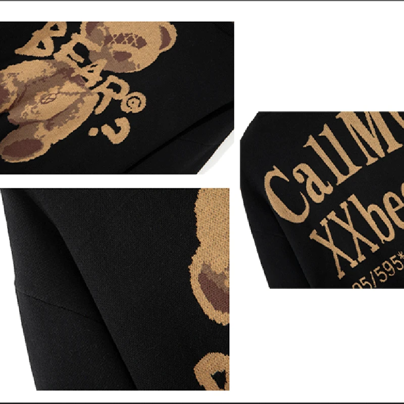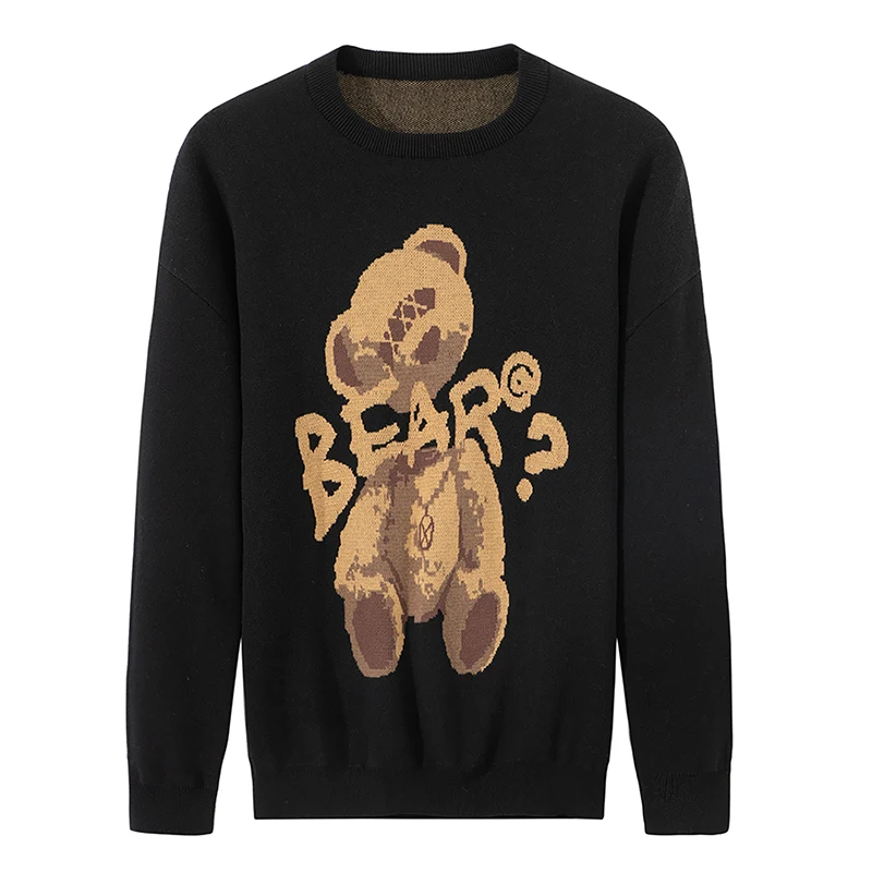 Мужской Свитер оверсайз Varsanol, трикотажные пуловеры из 100% хлопка с круглым вырезом и длинным рукавом, повседневная одежда с принтом медведя для зимы
