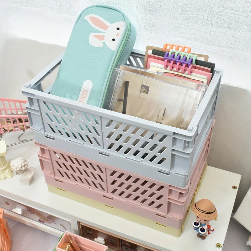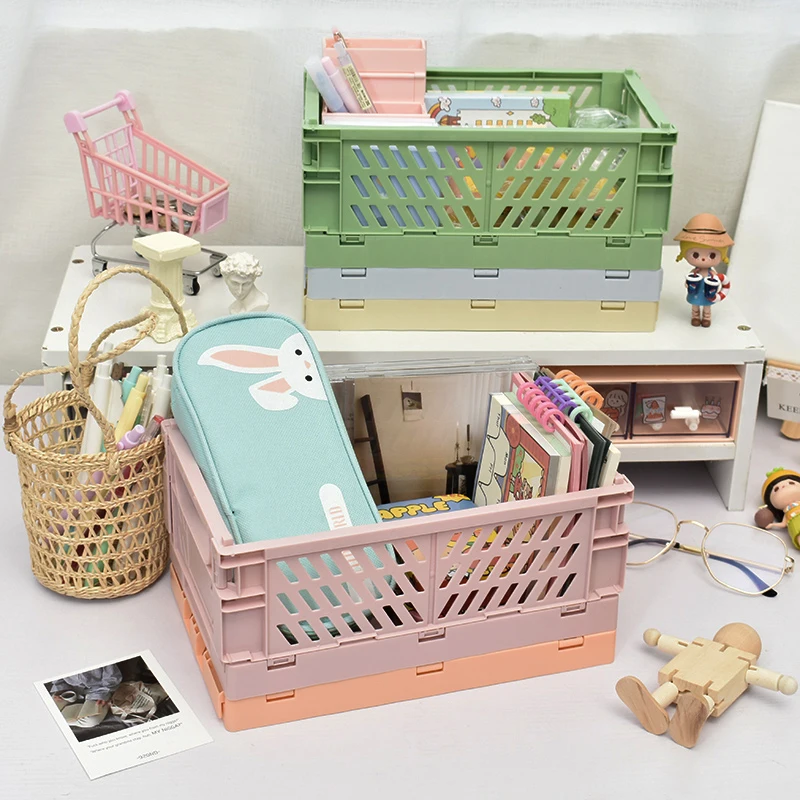 Складная пластиковая коробка для хранения, органайзер, Настольная Складная маленькая корзина для хранения, канцелярские принадлежности, декоративная косметика