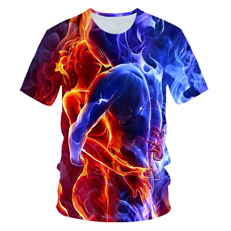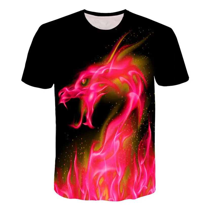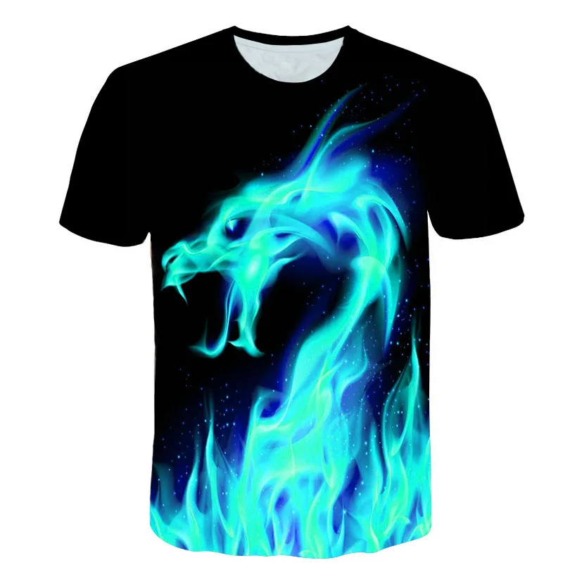 Летняя новая футболка для мальчиков с круглым вырезом и коротким рукавом для мальчиков и девочек с красным, фиолетовым пламенем и 3D-принтом, Детская Повседневная футболка, топ для девочек