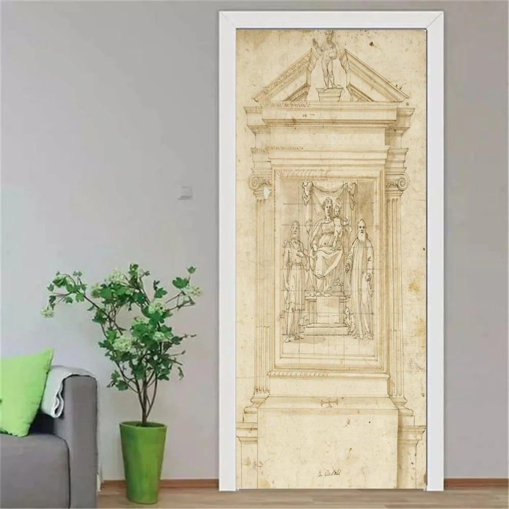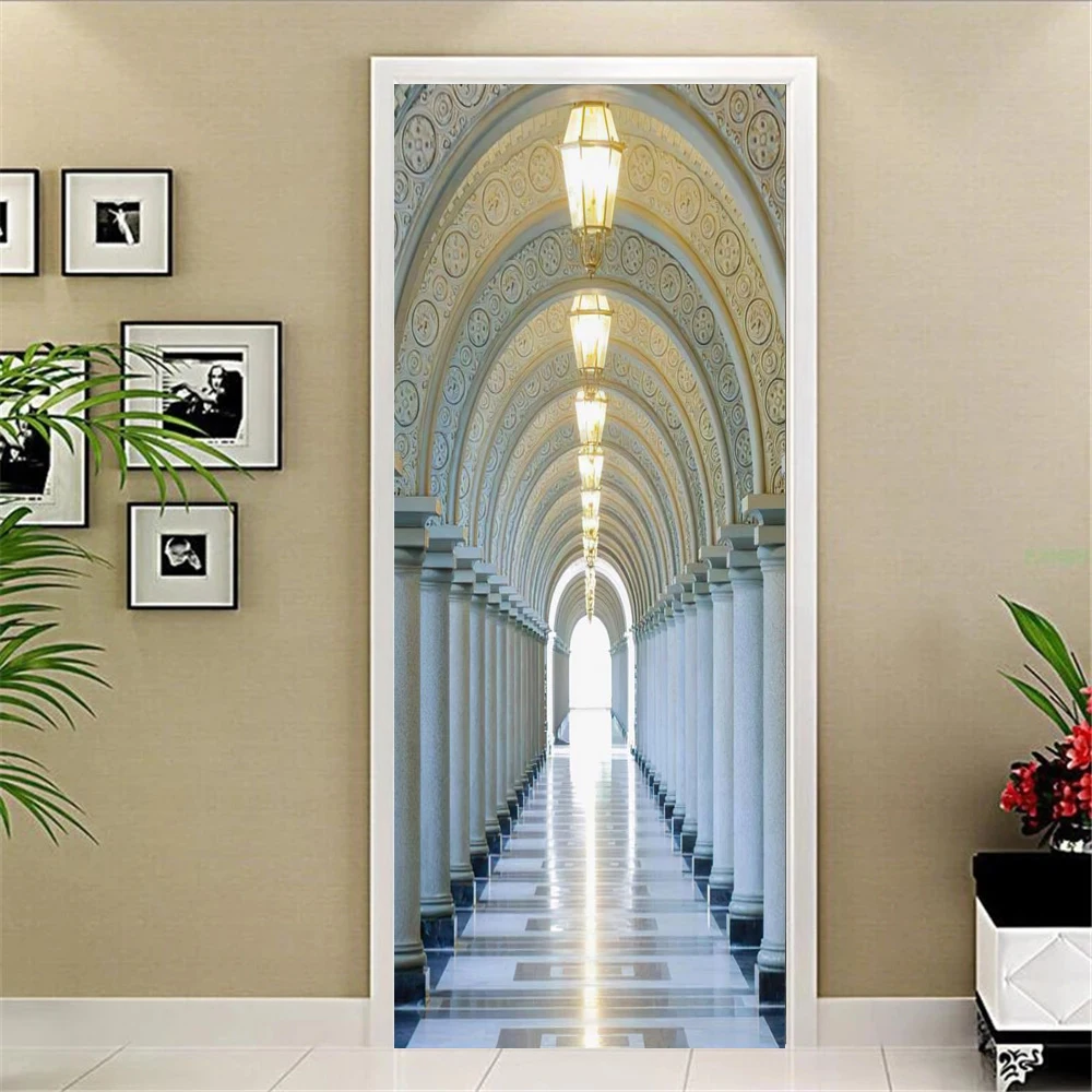 Наклейка ПВХ двери для спальни современные 3D обои сделай сам Европейская мода художественные дверные Плакаты для гостиной самоклеящиеся настенные наклейки для дома