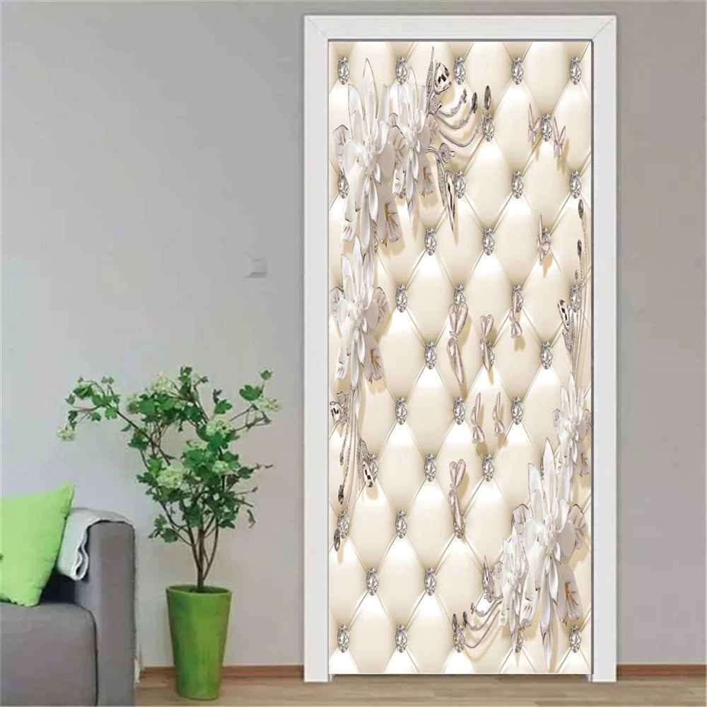 ПВХ двери для спальни наклейки Современные 3D сделай сам Европейская мода обои для гостиной художественная дверь плакат самоклеющиеся настенные наклейки для дома