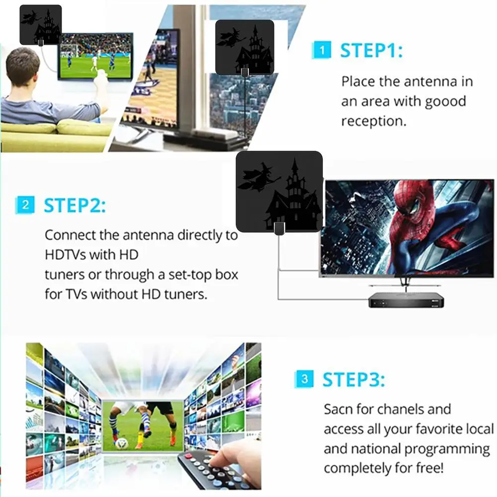 Телевизионная антенна, радиус 1180 миль, комнатная усиленная цифровая ТВ-антенна HD 4K HD DVB-T Freeview TV для местных каналов, домашнего телевидения