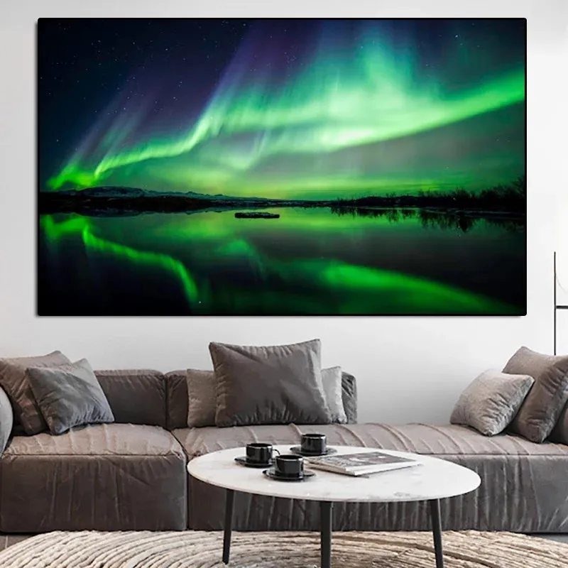 Северное освещение озеро холст настенная печать живопись пейзаж Картина Северный современный зал Европа Декор для дома Seacape плакат