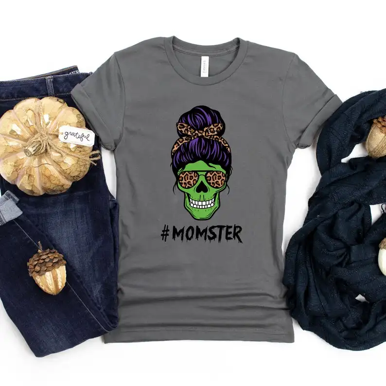 Забавная рубашка Momster в виде черепа и мамы на Хэллоуин, футболки с коротким рукавом, модная женская одежда из 100% хлопка с круглым вырезом, женская одежда в повседневном стиле