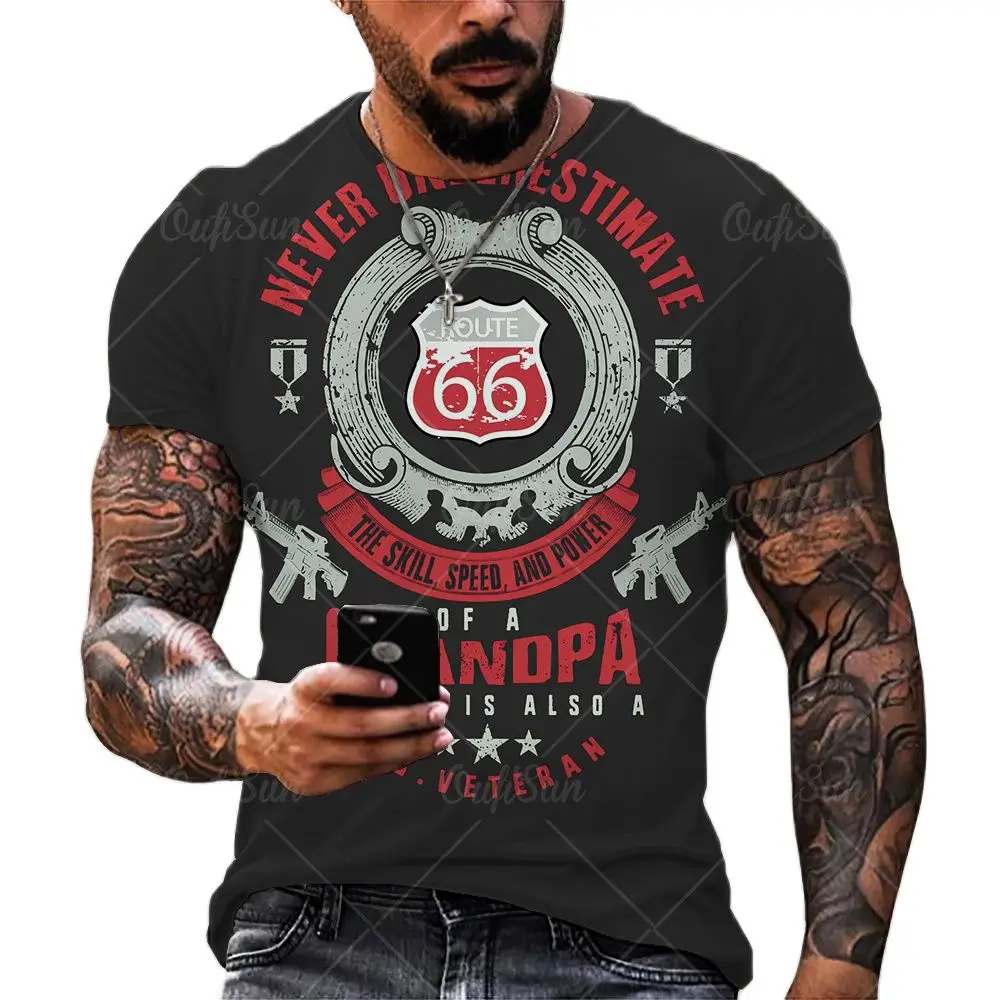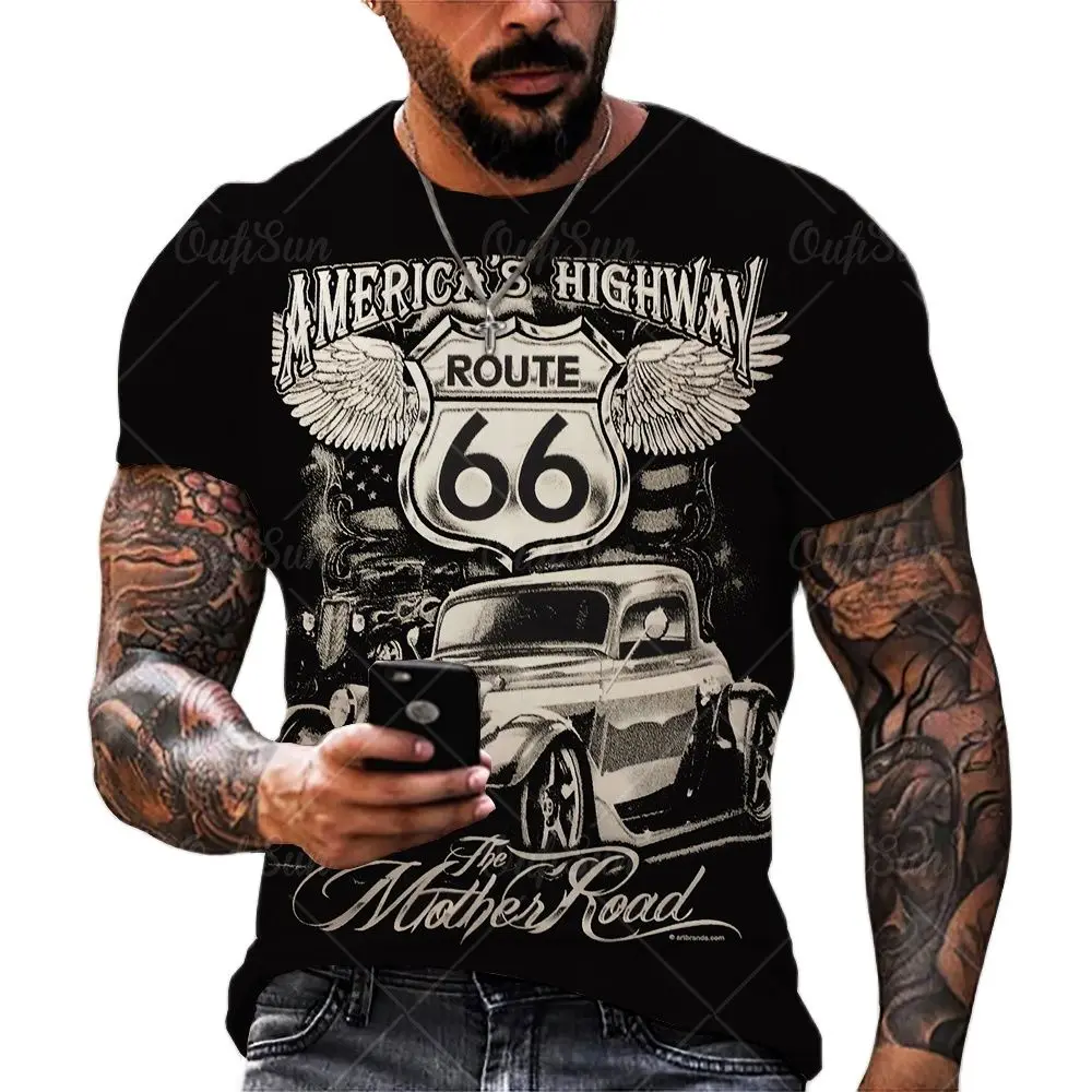 Футболка мужская с круглым вырезом, модная тенниска оверсайз с коротким рукавом, Удобная майка в стиле хип-хоп, 3d-принт, 66 шоссе, на лето