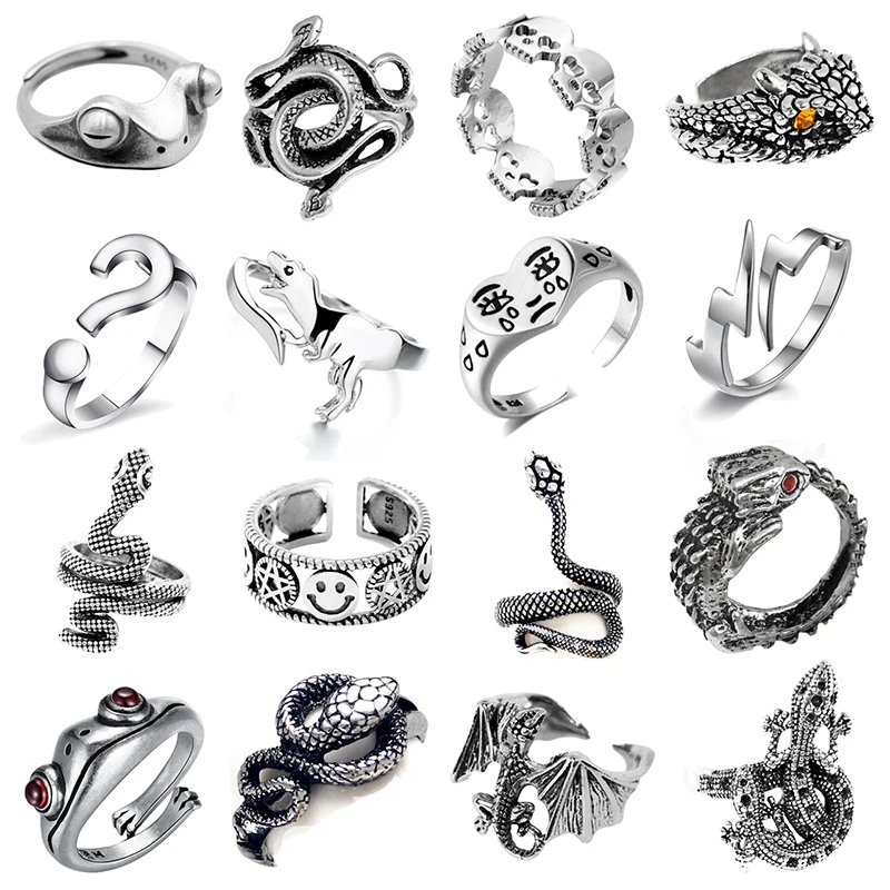 Мужские и женские кольца в стиле панк, регулируемые кольца со змеин...