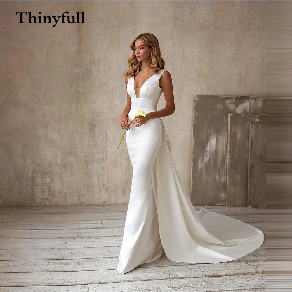 Tinyfull, простое шелковое искусственное свадебное платье со съемны...