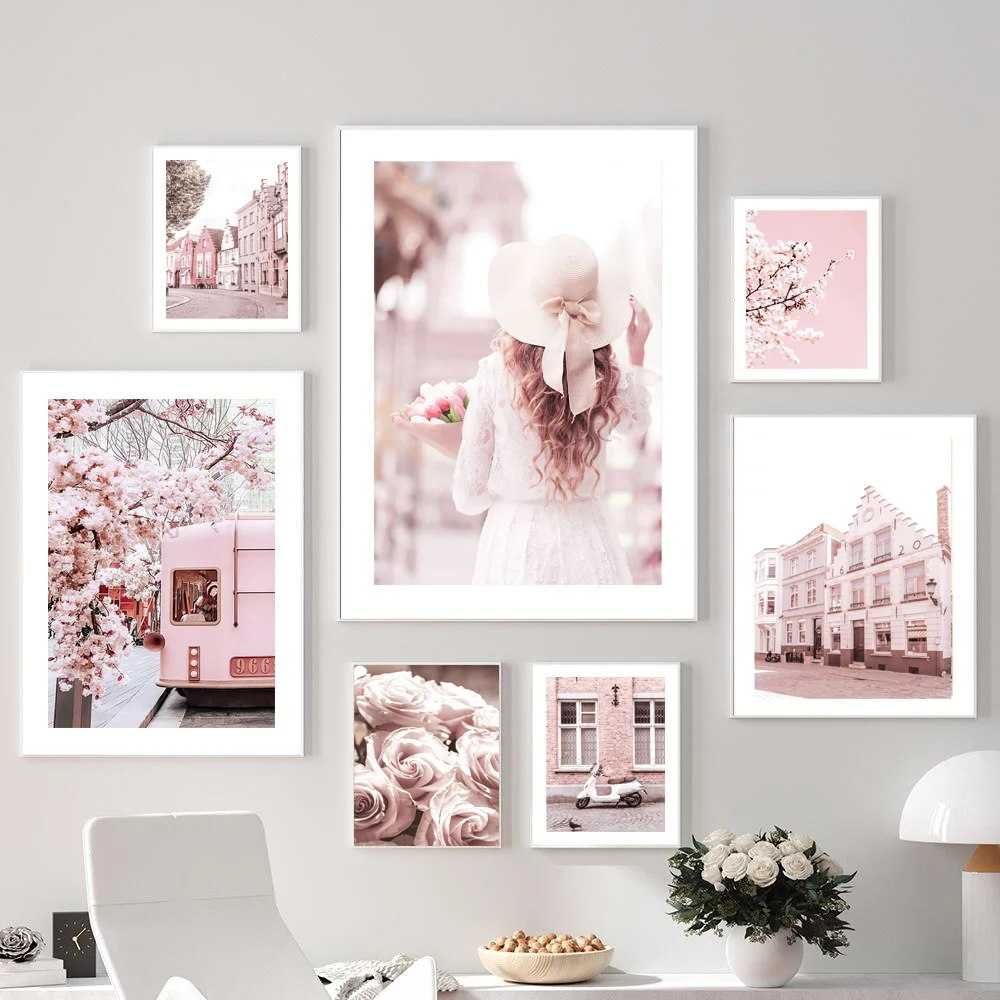 Розовая Роза Пион Дейзи Лилия персик цветок стены искусства холст ж...