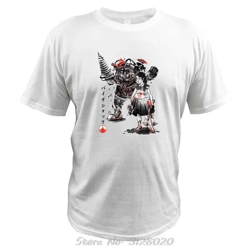 Футболка Bioshock с изображением большого папы и маленькой сестры Суми, высококачественные хлопковые хипстерские рубашки, Мужская футболка, футболки с изображением аниме, топы