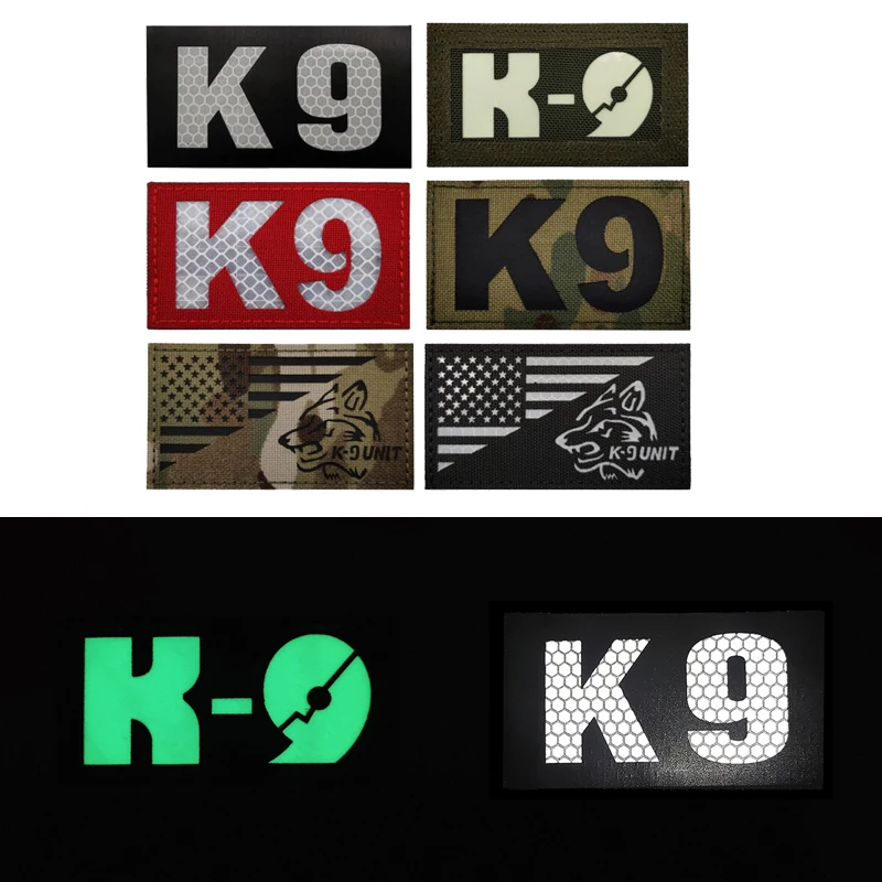 Нашивки К9 с американским флагом, блестящие в темноте, с синей лини...