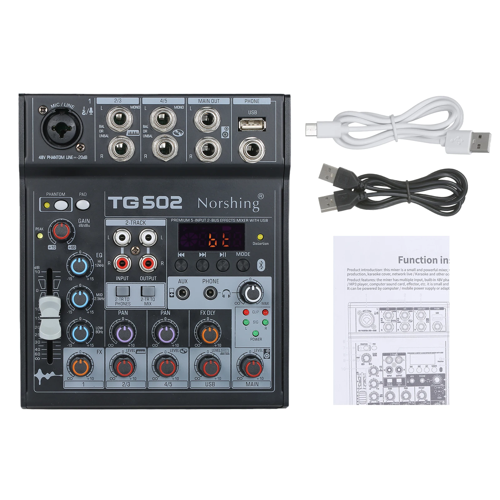 Norshing TG 502 профессиональный звуковой микшер 4-канальная стереозвуковая панель, консольная система USB BT, цифровой аудиосигнал, процессор