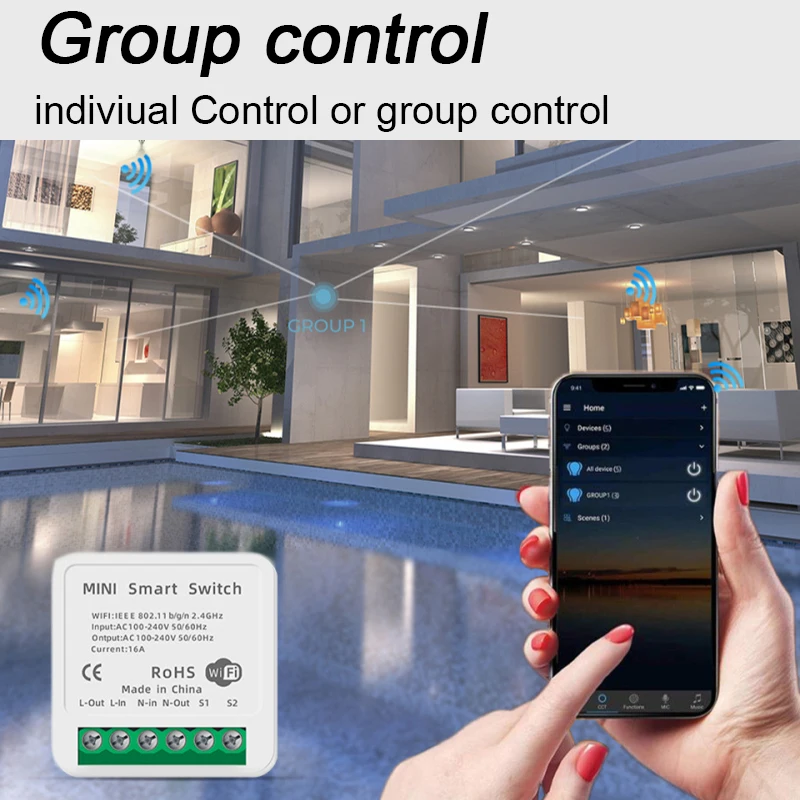Установите все ваши умные переключатели в группу через приложение smart Life. Затем одним нажатием, чтобы выключить все ваши приборы или светильники смартфоном.