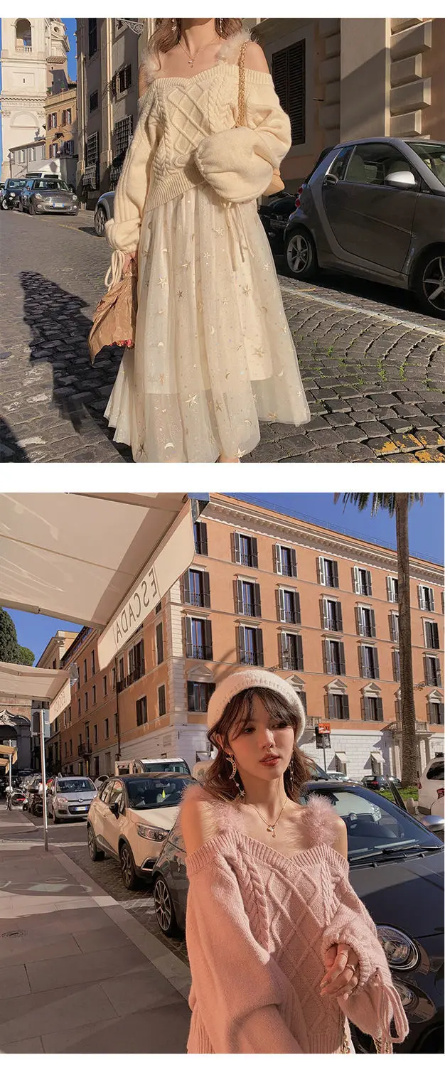 Пуловер женский, с открытыми плечами, осенний, розовый