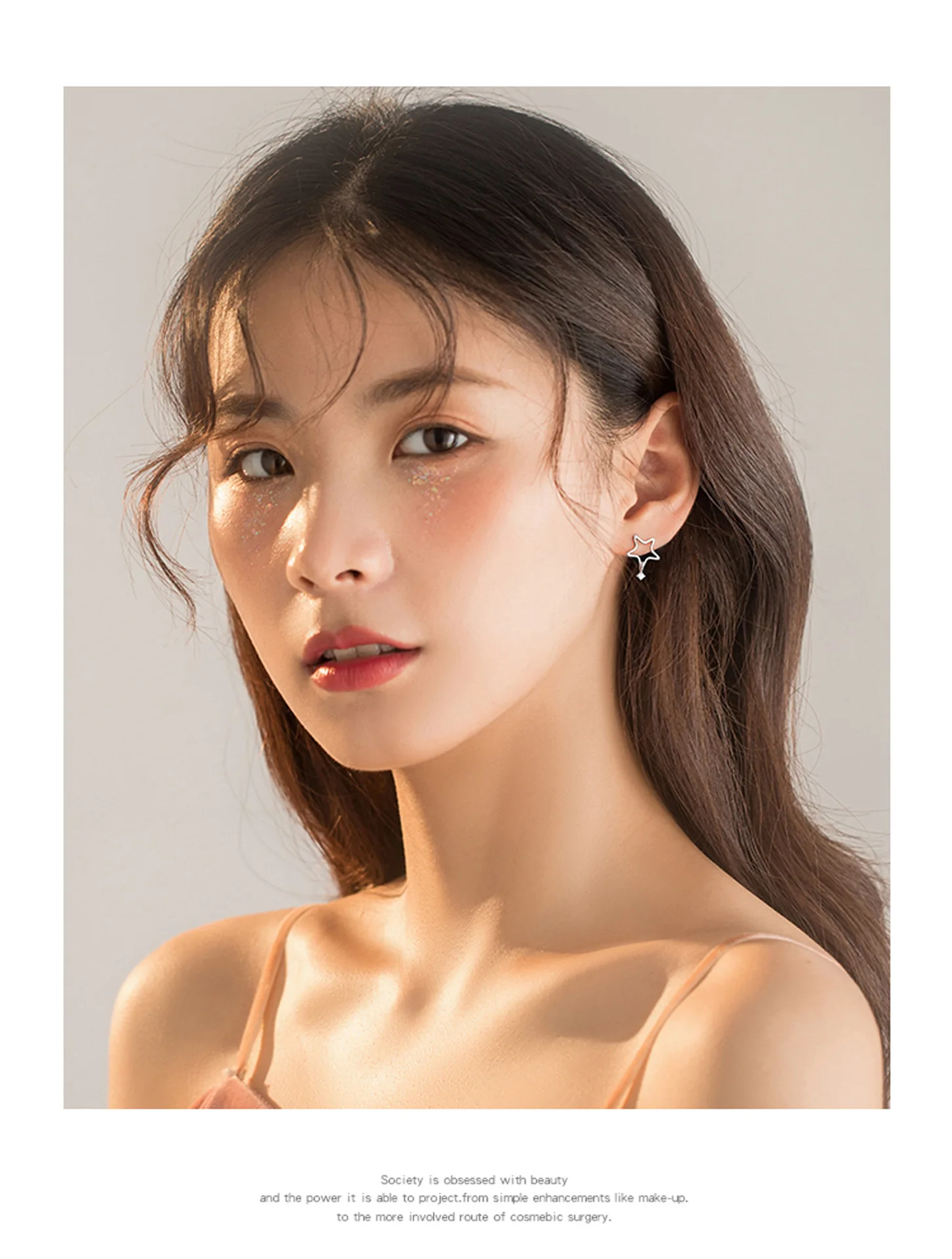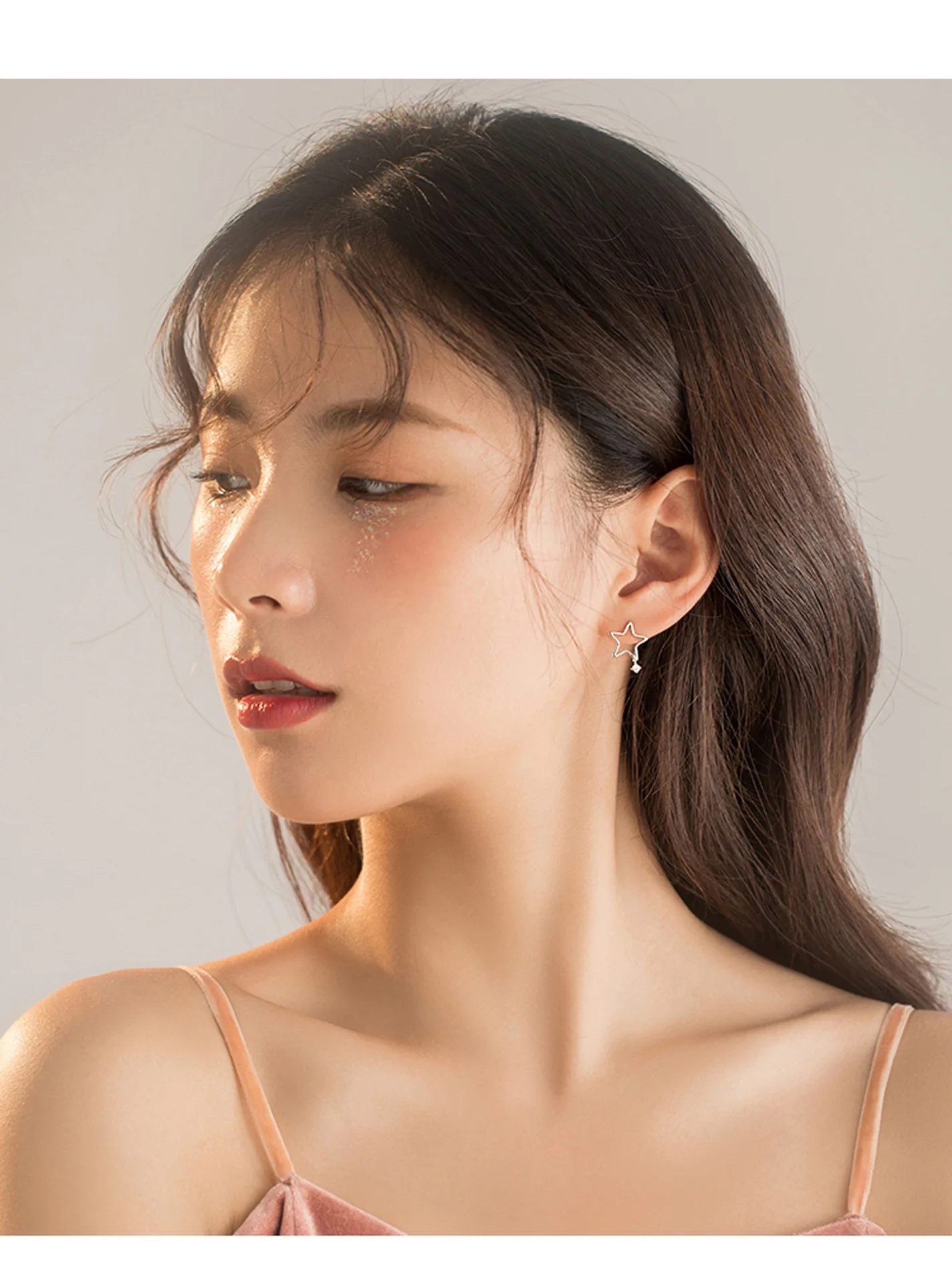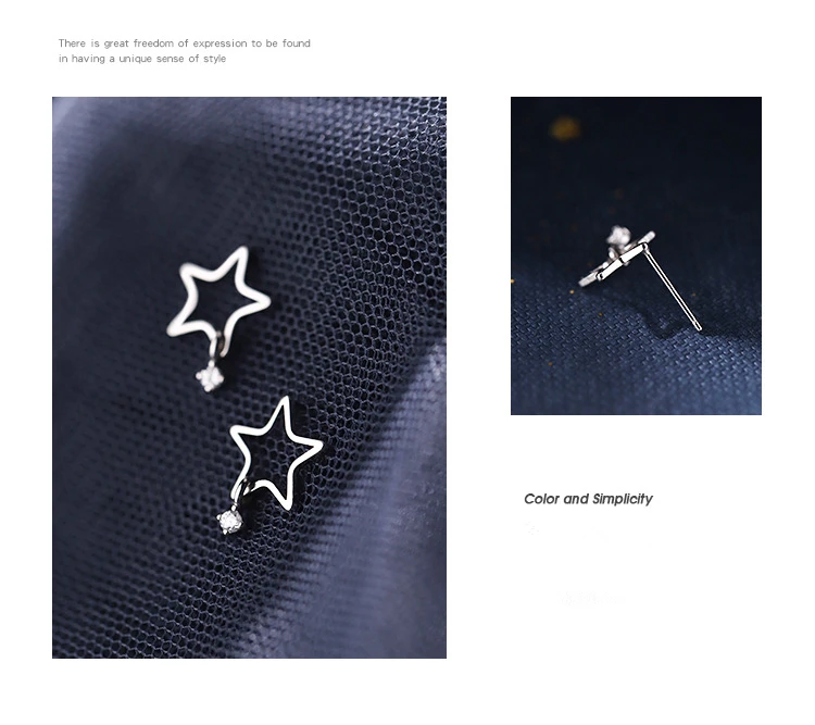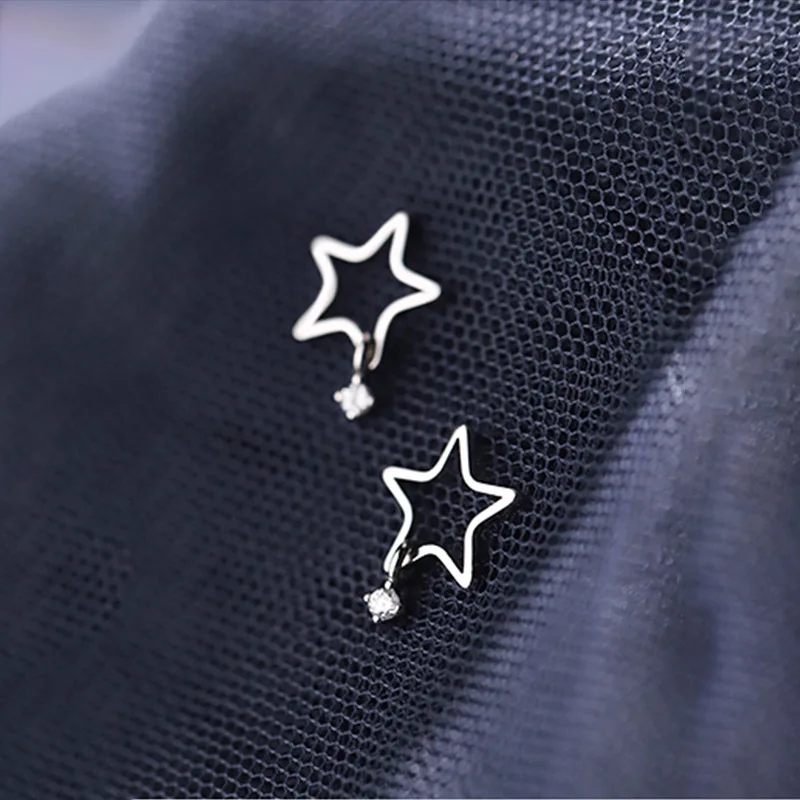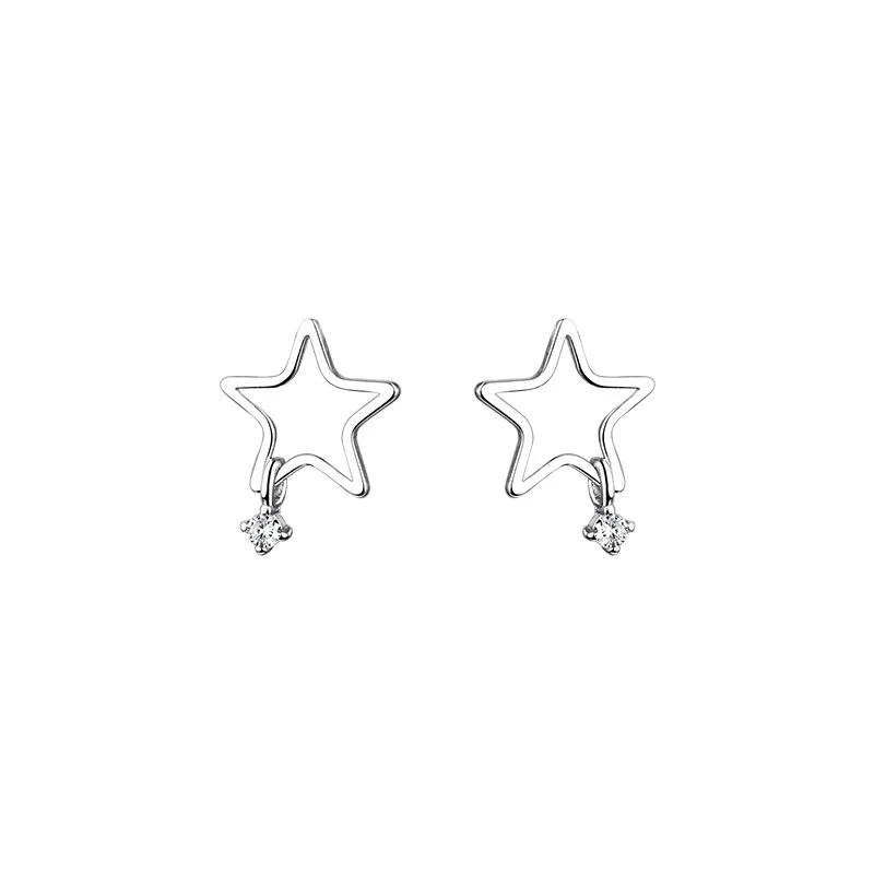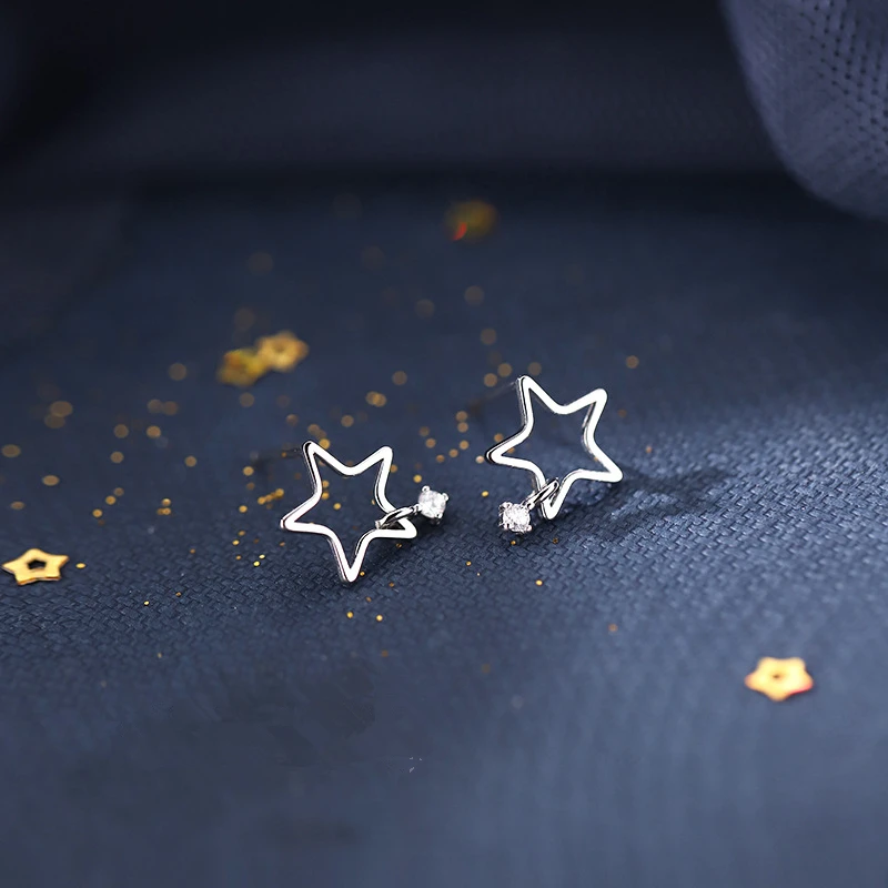 Серьги-гвоздики с полыми звездами из циркония, серебристого цвета