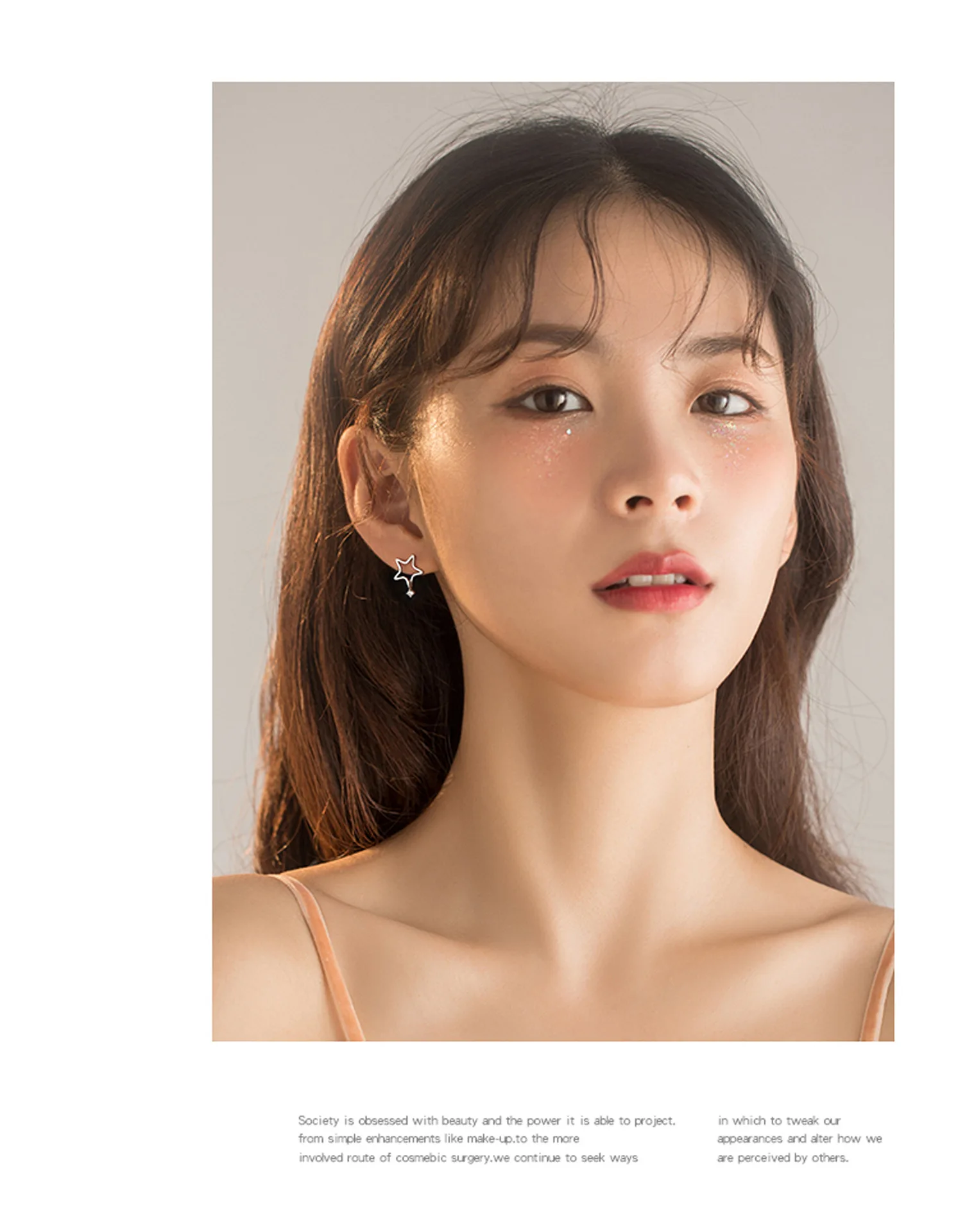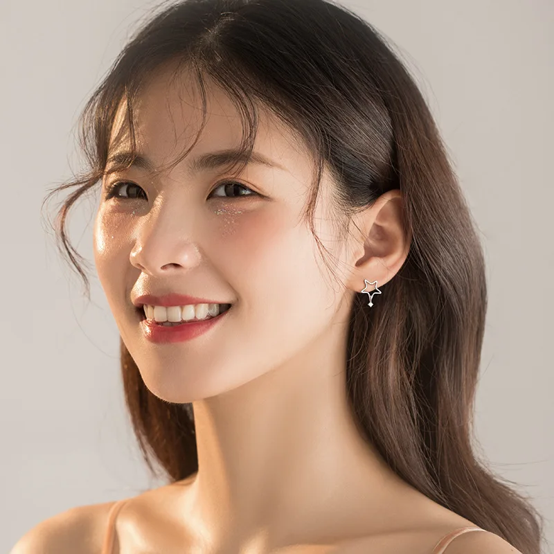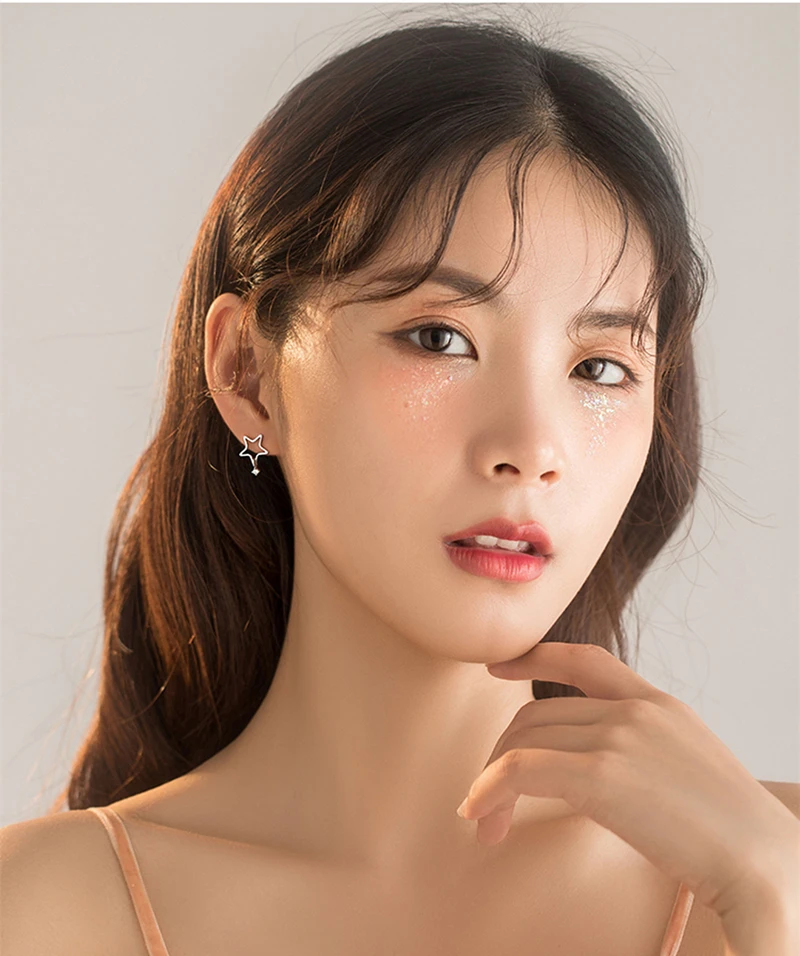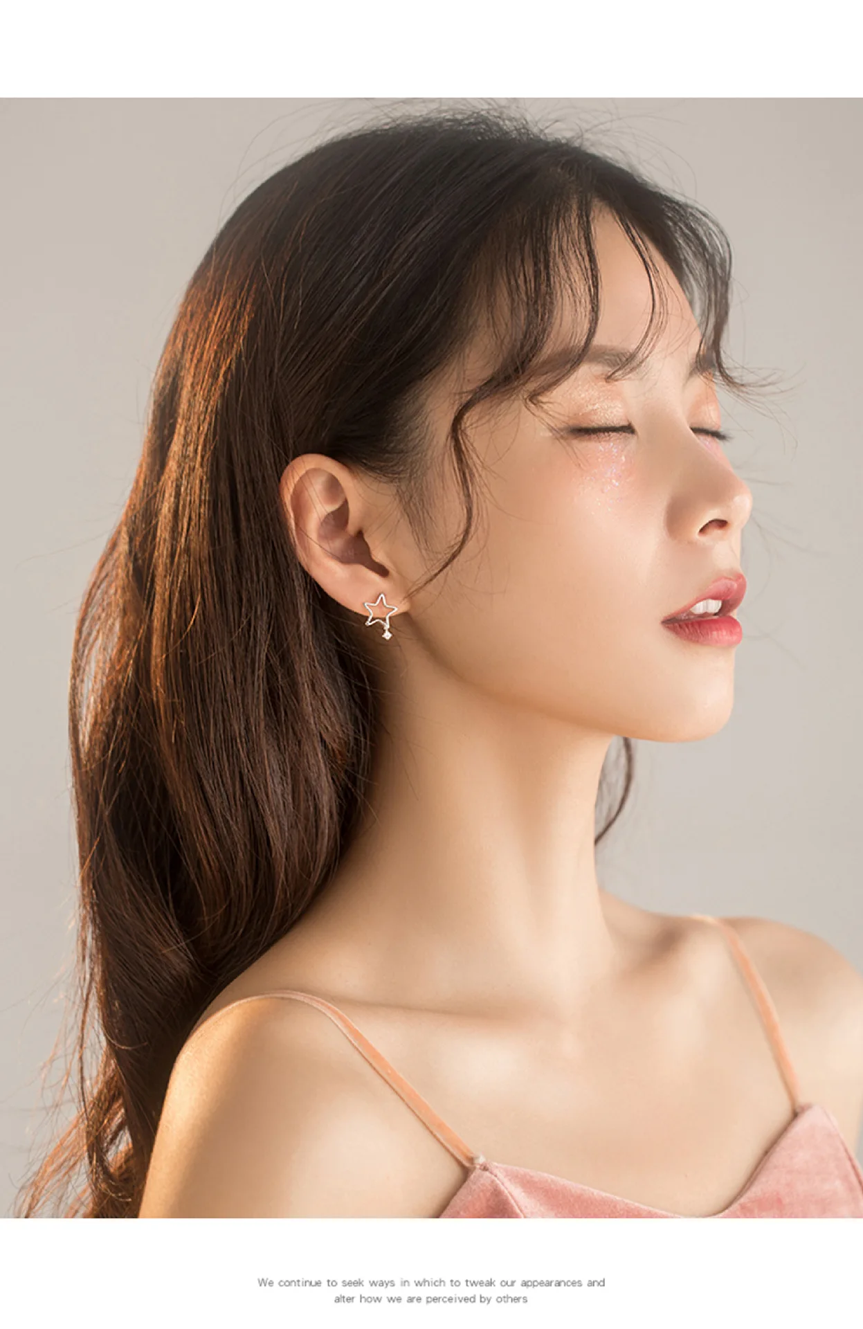 Серьги-гвоздики с полыми звездами из циркония, серебристого цвета