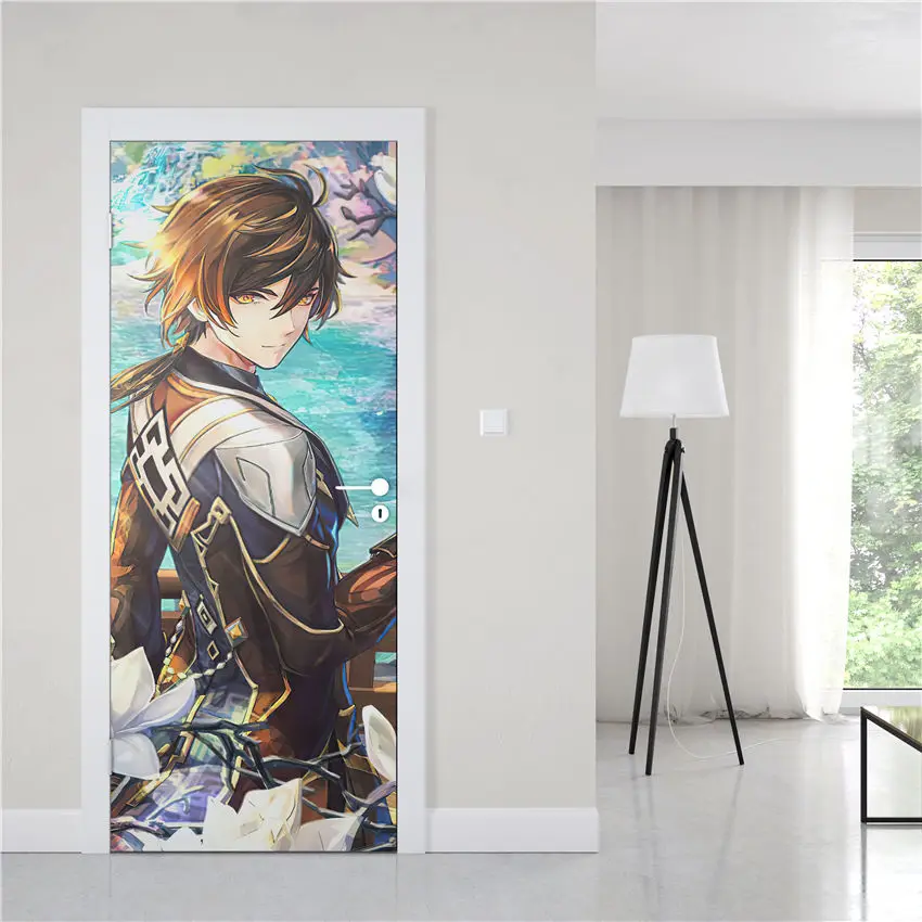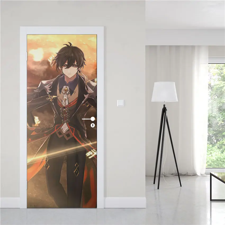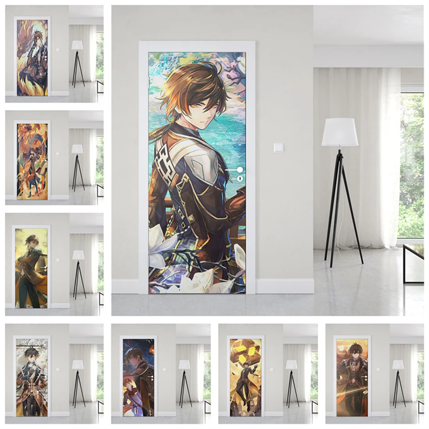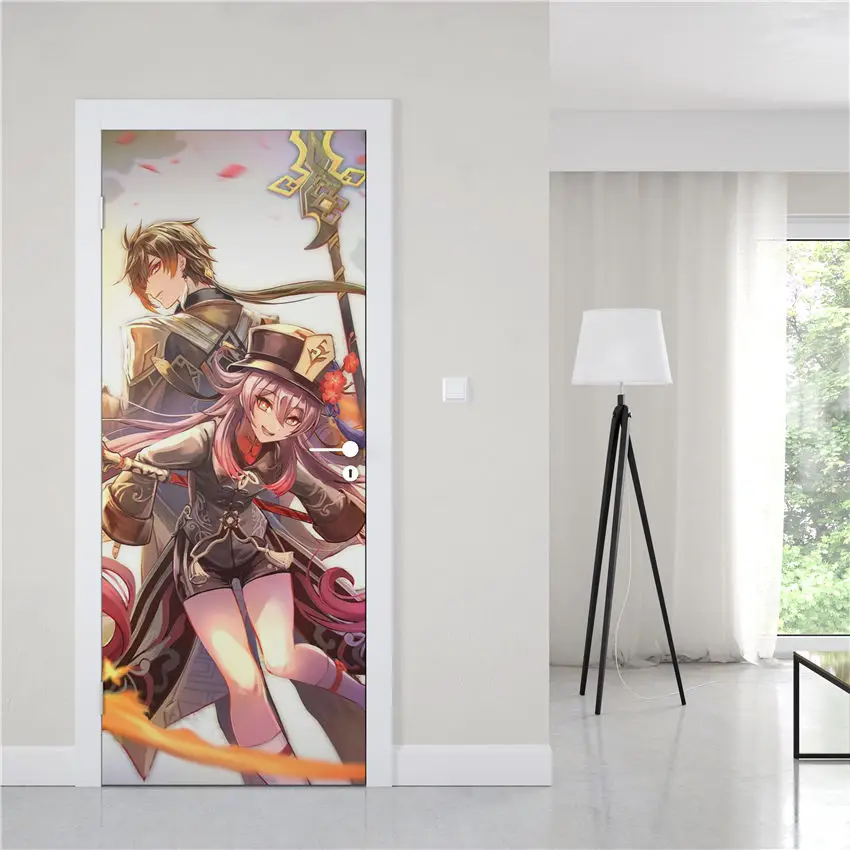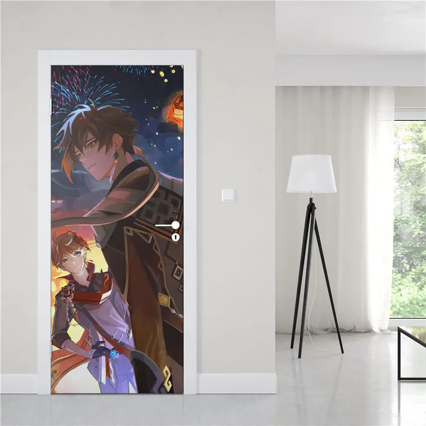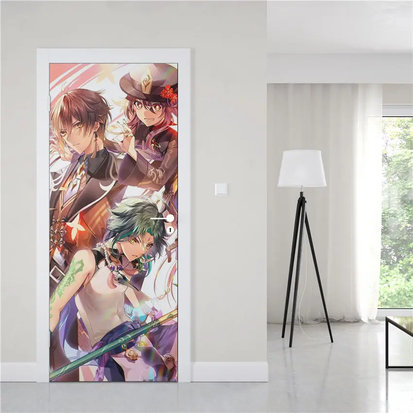 Игровые самоклеящиеся дверные обои из ПВХ Genshin, ударопрочные украшения для дома, наклейки на двери, водонепроницаемые настенные украшения сделай сам