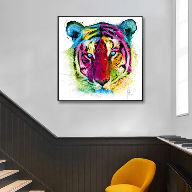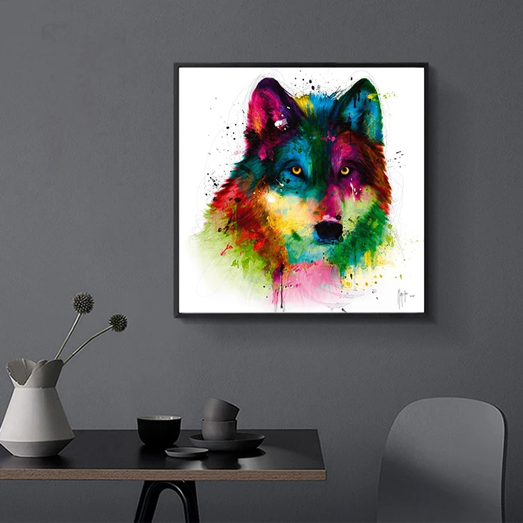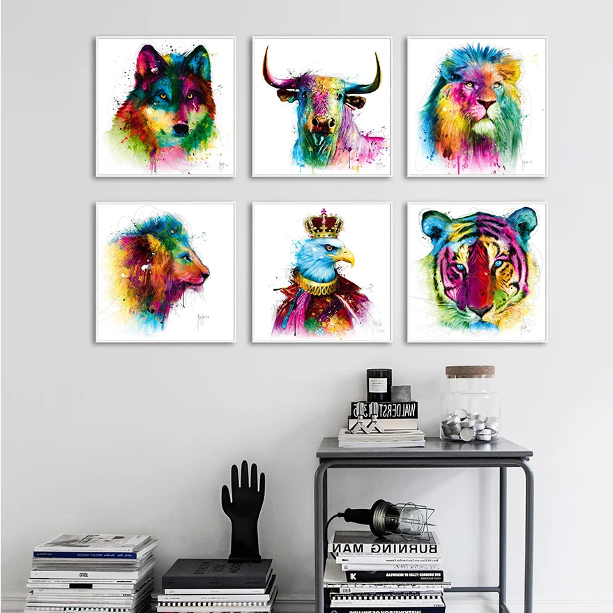 Забавные красочные акварельные абстрактные животные, попугай, Тигр и волк, граффити, искусство, холст, украшение, Фотопечать
