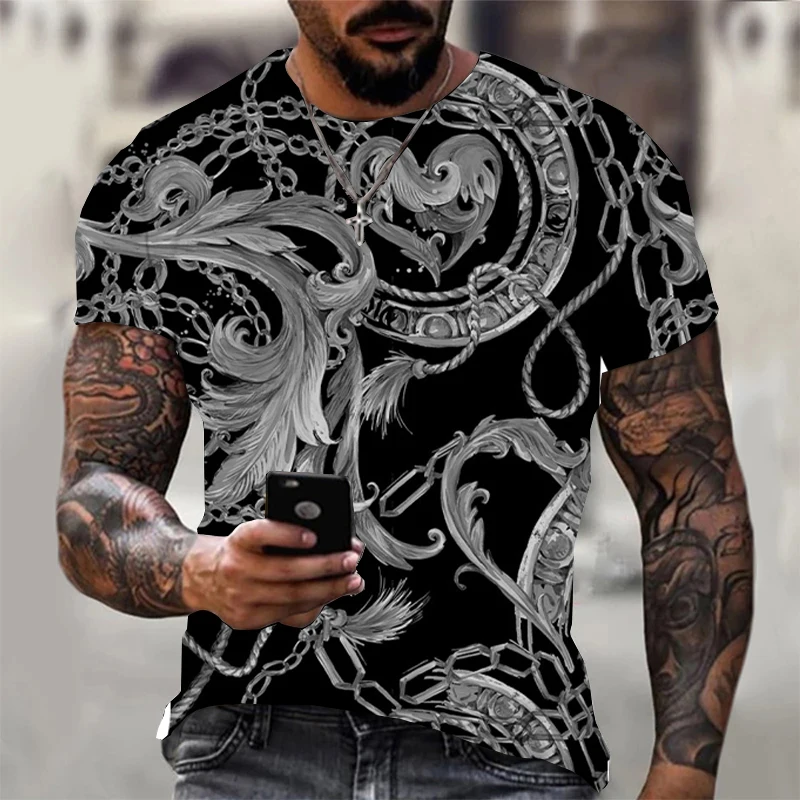 Футболка мужская с 3D-принтом в стиле барокко, роскошная брендовая ...