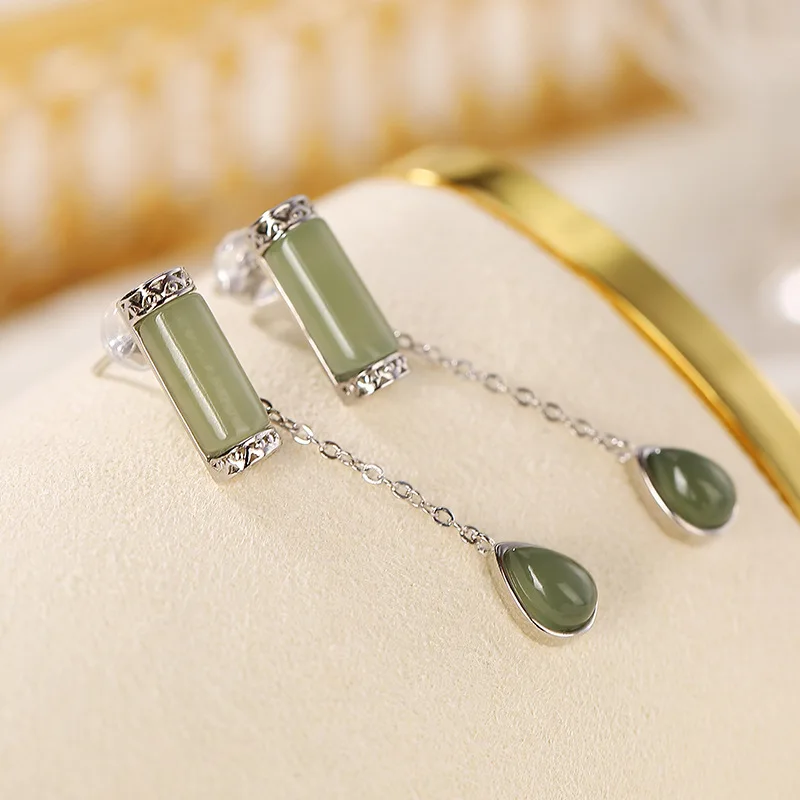 Серьги женские из серебра 925 пробы, с натуральным нефритом, подвеска, L0065