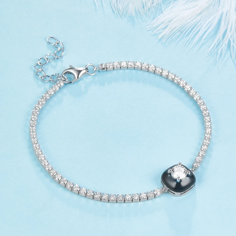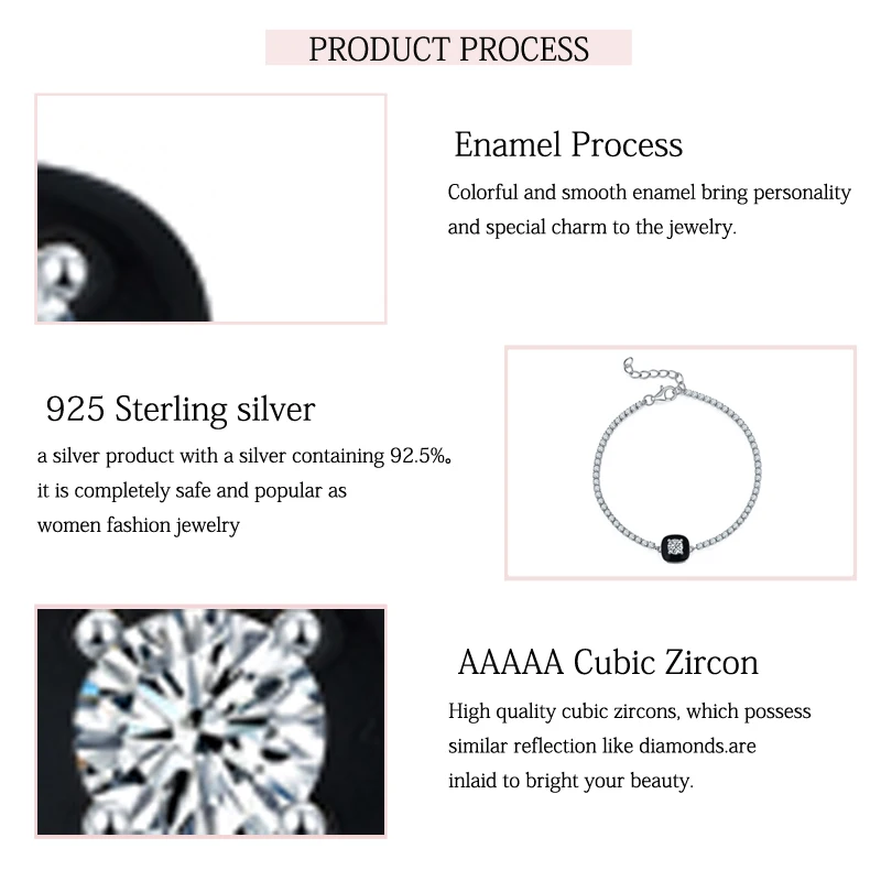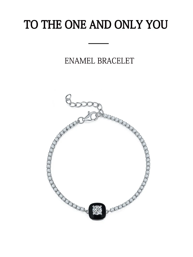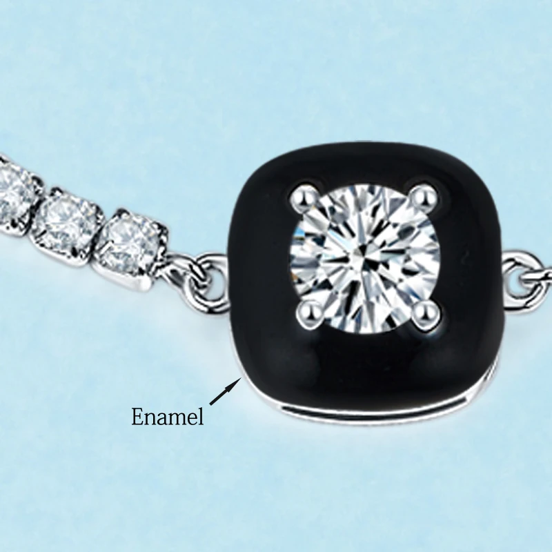 Женский серебряный браслет Laya, из серебра 925 пробы с черной эмалью и белым цирконом, модные ювелирные украшения в ретро стиле