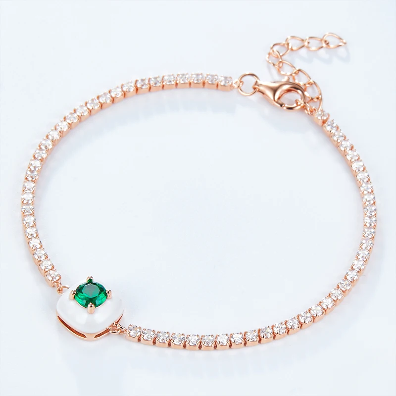 Женский браслет из серебра 925 пробы, с зеленой эмалью