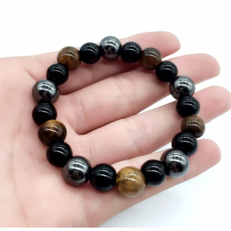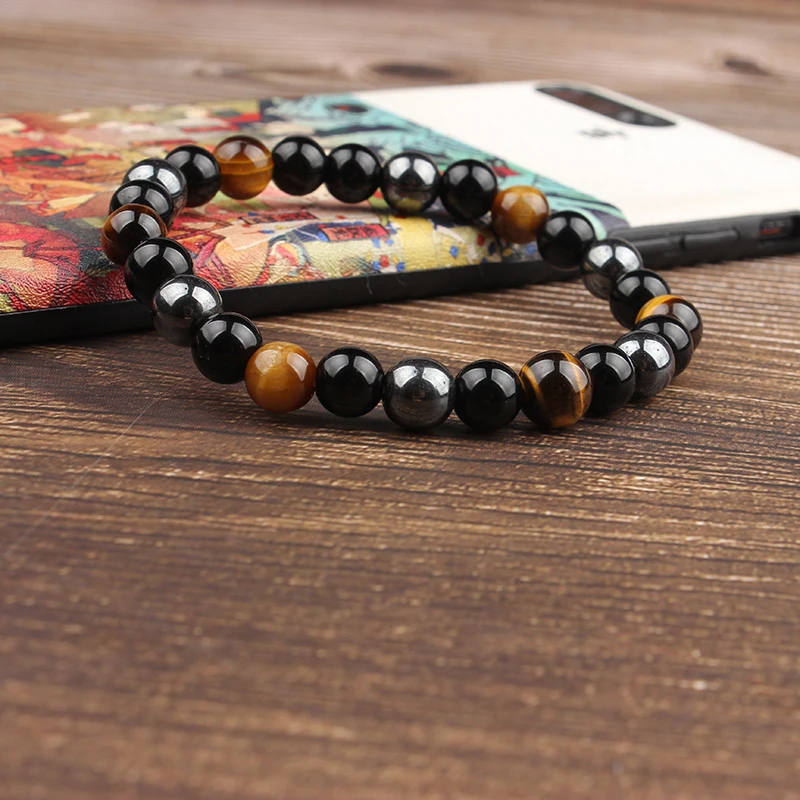 Мужские браслеты 8 мм, натуральный камень, черный оникс, тигровый глаз и гематит, браслеты для женщин, магнитный браслет для защиты здоровья