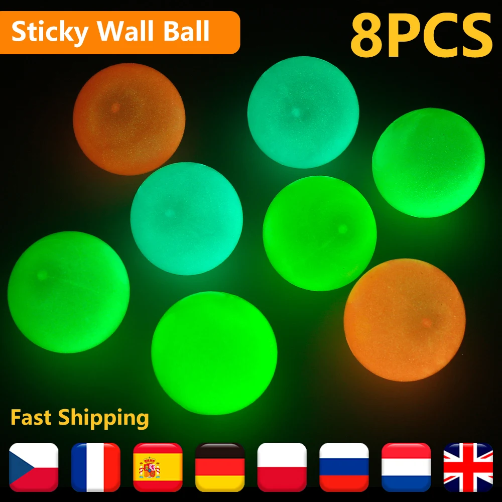 Липкие настенные шарики, светящиеся шарики, светящиеся шарики, липкие шарики для снятия стресса, веселые игрушки для детей, подарок на Новый год