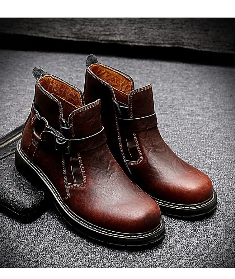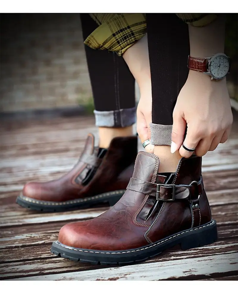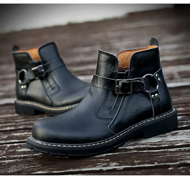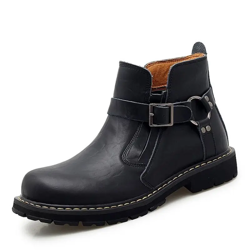 Мужские короткие ботинки из ПУ кожи, с круглым носком и пряжкой