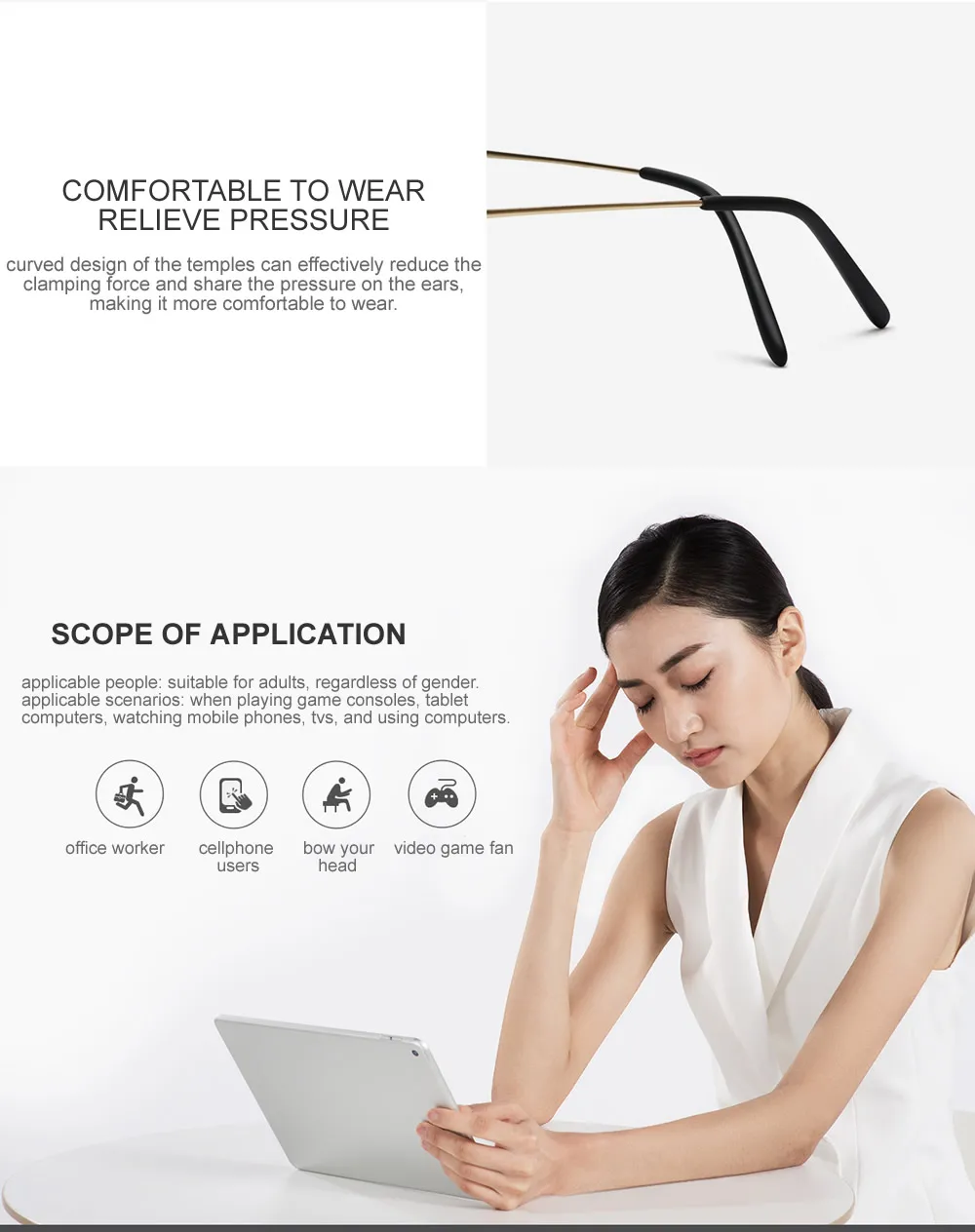 Оригинальные компьютерные очки Xiaomi Mijia с защитой от синего излучения, 40% защита от синего света, удобная одежда, очки с металлической оправой TR90