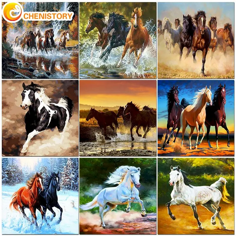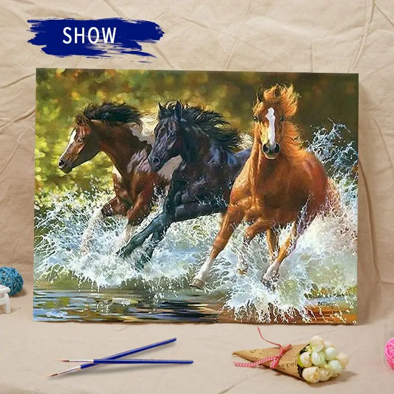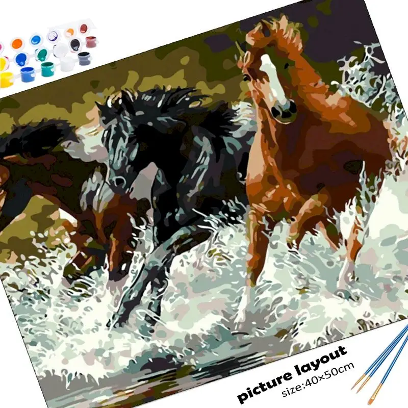 RUOPOTY река бегущая лошадь животные Diy Цифровая живопись по номер...