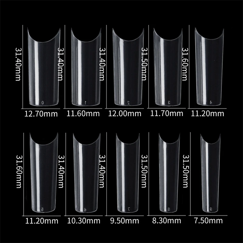 500 шт. акриловых кончиков для ногтей с 10 различными размерами.