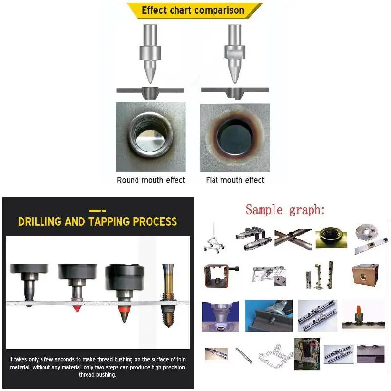 Круглый Тип дрели (Стандартный Тип дрели): Фрикционное сверло проникает в заготовку при нанесении втулки для формирования выпуклого кольца. Поверхность головки, подходит для уплотнения резьбы или шайбы гайки.