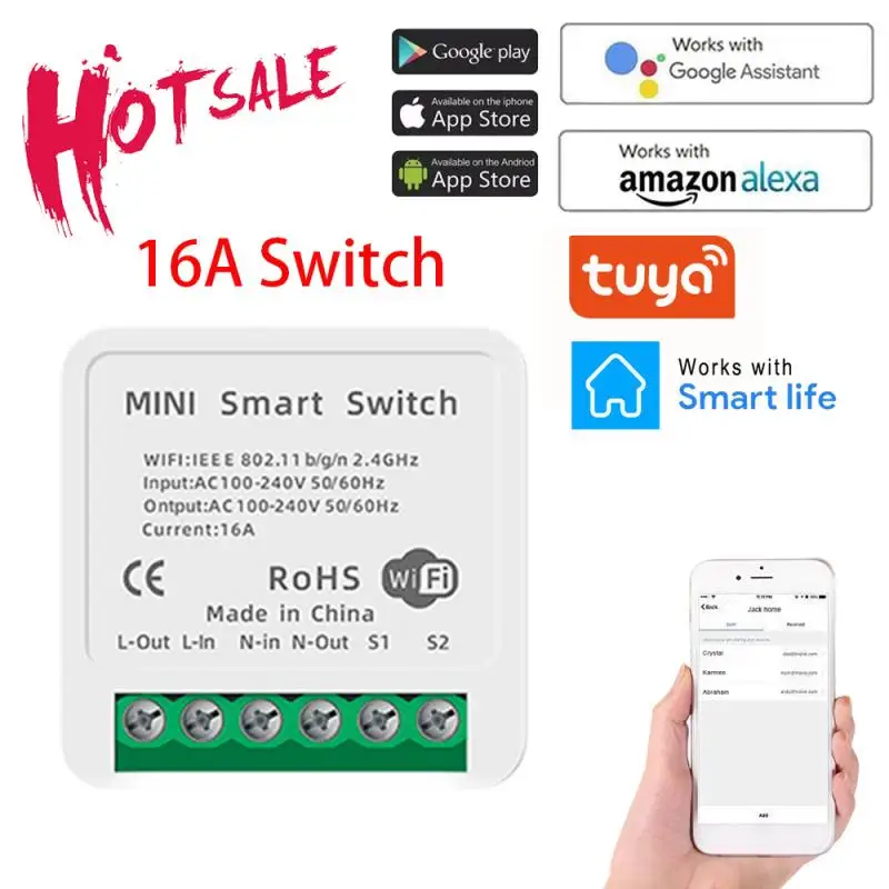 Умный мини-выключатель Tuya 16 А с поддержкой Wi-Fi и таймером