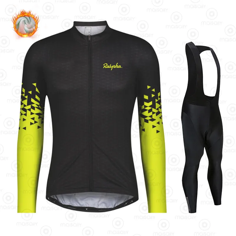 Новинка 2021, зимний велосипедный костюм Ralvpha Team, комплект с нагрудником, теплая шерстяная флисовая одежда для велоспорта, зимняя мужская велосипедная триатлоновая кофта