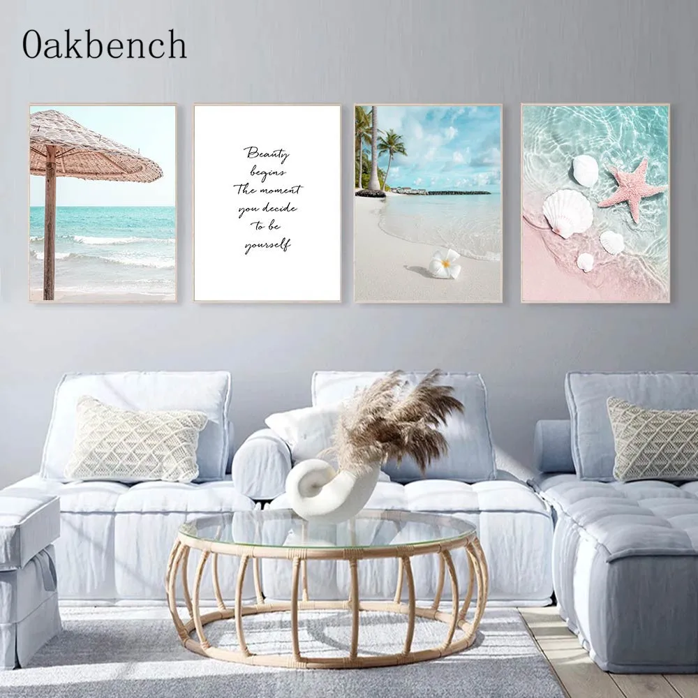 Постер скандинавиа, пейзаж морского пляжа, настенная живопись, морская звезда, ракушки, холст, принты, картины для океана, гостиной, скандинавские украшения