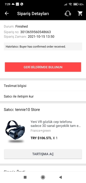 Я не получил продукт, никаких сообщений от продавца и споров не было обработано! Я очень честный продавец.